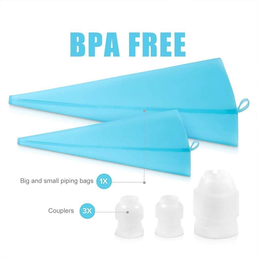 - ALL IN - Including everything you need to start decorating Cakes like a PRO! 1 Non-slip cake turntable, 48 Stainless Icing Tip with 1-48 number, 6 large icing tips with 1-6 Number, 1 12inch Pastry reusable Bags, 1 14inch Pastry reusable Bags, 1 Cake Brush, 1 Cake Cutter, 1 Cake Pen, 3 Cake Scrapers, 2 cake nozzles small coupler, 1 cake nozzles large coupler, 25 disposable bag, 1 Icing Spatula (27cm), 1 Angled Icing Spatula (27cm ) 2 flower nail, 1 Cake Flower Lifter, 12pcs cupcake.