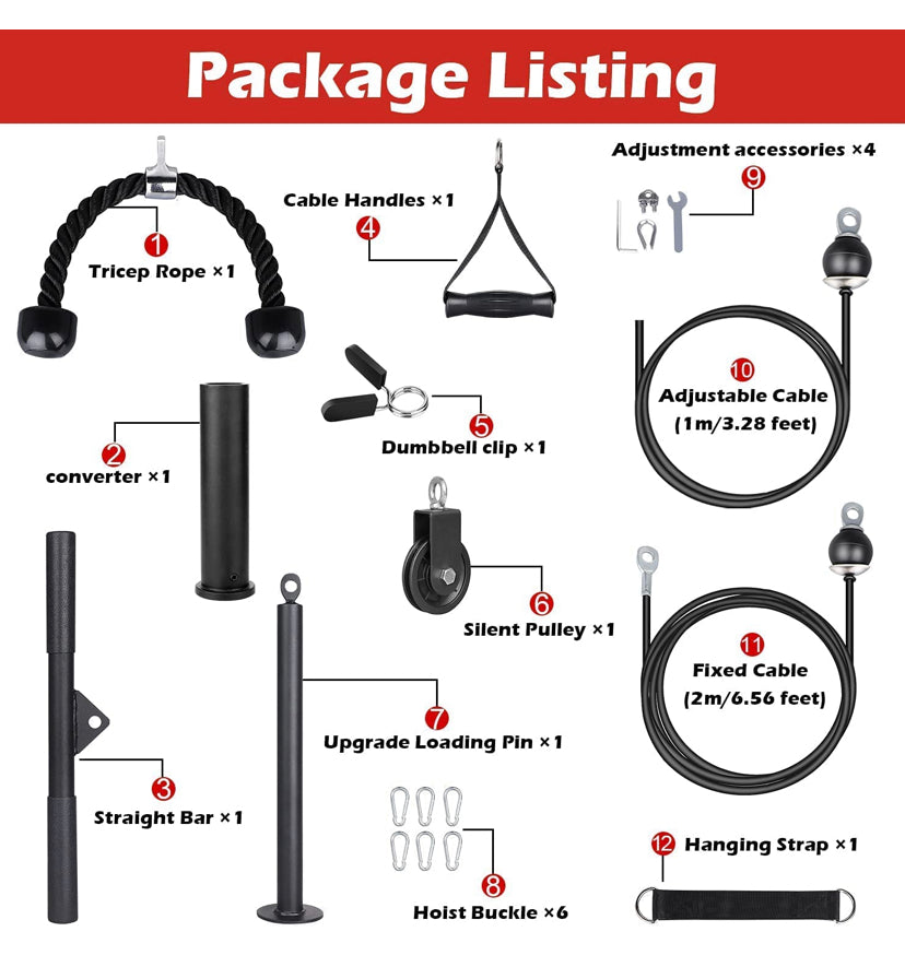 - Upgraded Quality Kit & More Exercises Choice: Designed the latest pulley cable system with more accessories than other pulley system sets. Get 2 modes: pull down and lift up. And multiple exercises, you can train the biceps, triceps, shoulders and back such as biceps curl, row, fly etc.