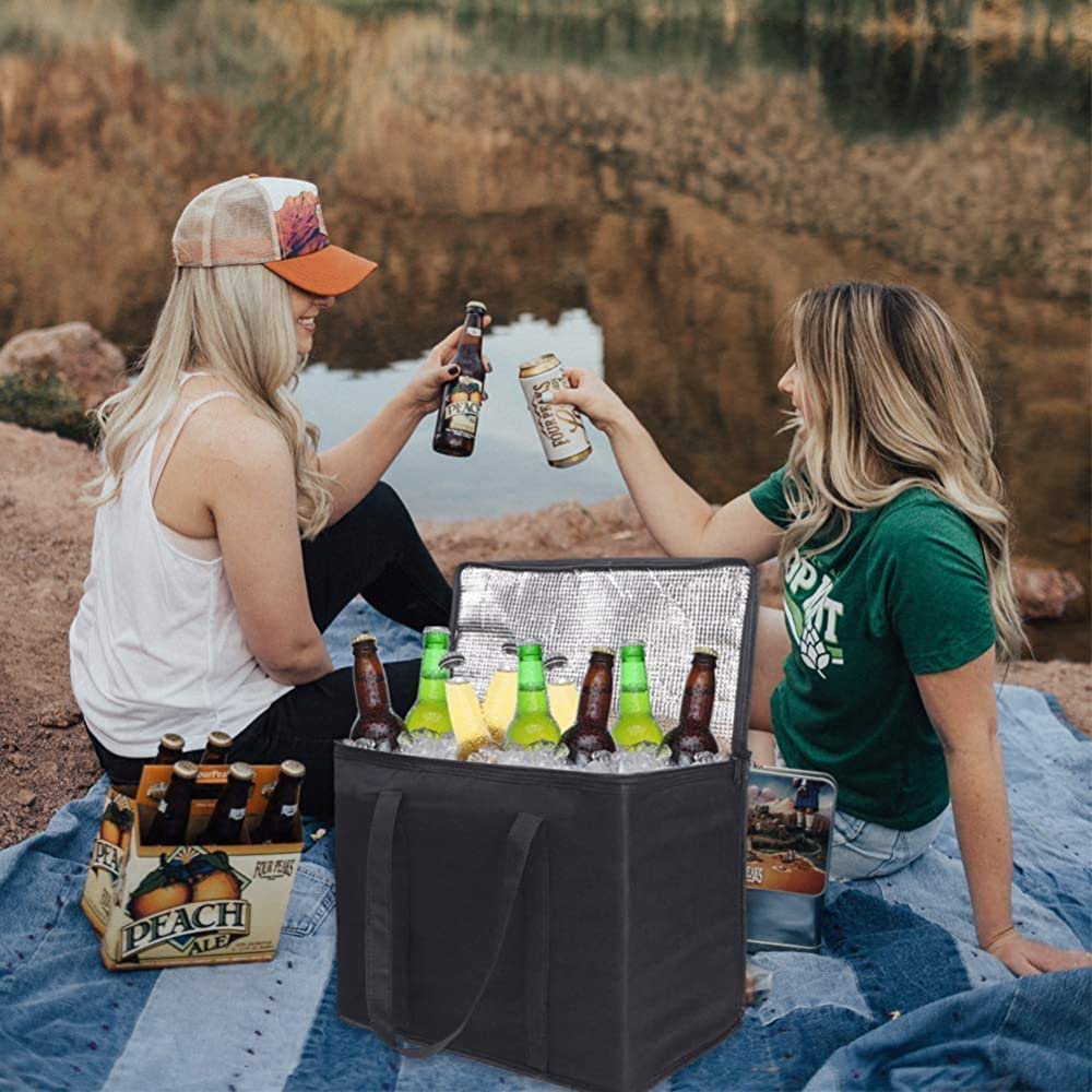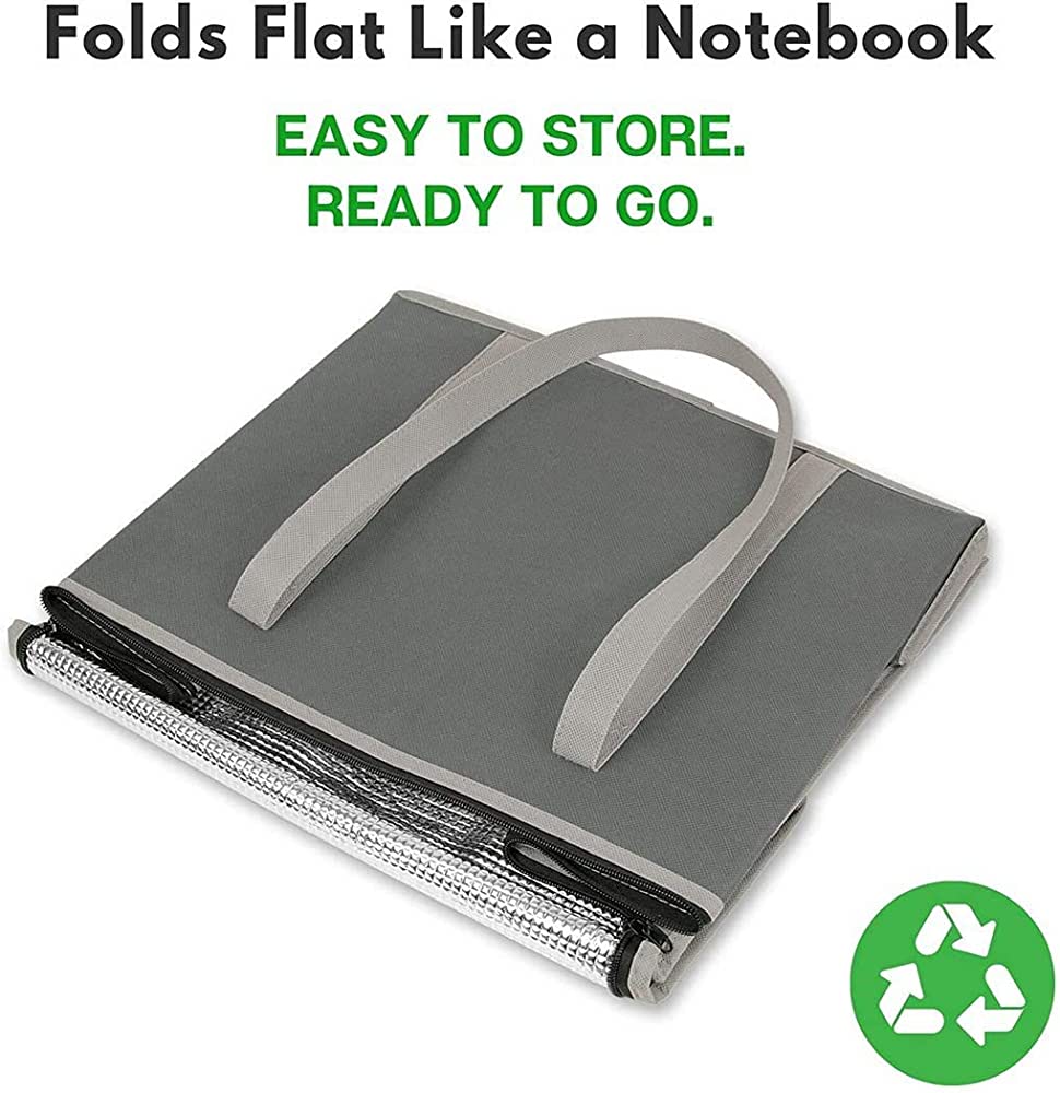 Set of 2 XL Insulated Grocery Bags with Zipper Closure Heavy Duty Foldable Insulated Shopping Bags for Groceries & Reusable Zipper Insulated Bag for Cold/Hot Shopping & Frozen Food Transport Delivery