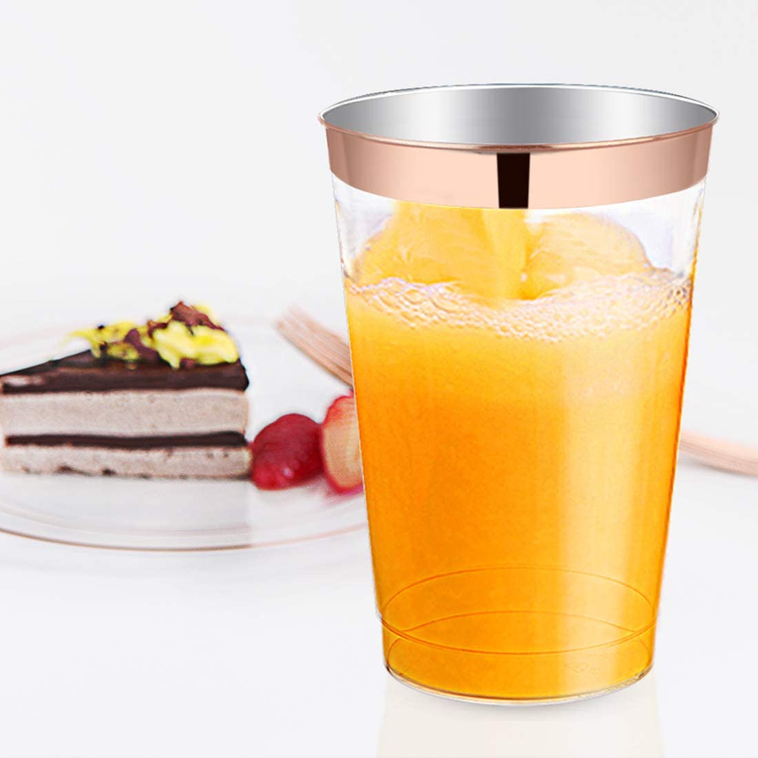 - Large Volume cups: The plastic tableware set include 12oz rose gold plastic cups which can suit for any water, juice, beer and so on any kind of drink.
