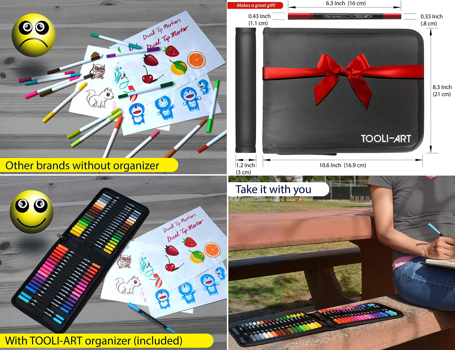 - ORGANIZED & PORTABLE - Take your art with you wherever you go with the durable and portable canvas organizer. Perfect for use at the park, school, museum, on vacation, or whenever and wherever inspiration strikes. At 10.6 x 8.3 x 1.2 inches, it fits perfectly in a backpack or medium sized bag and keeps all your markers neat and tidy in one place. Create the art, not the mess!