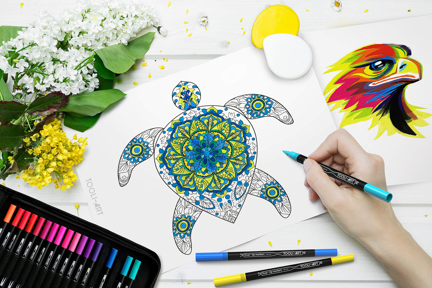 36 Dual Tip Brush Pens Art Markers Set Flexible Brush and 0.4mm Fineliner With Case - Coloring Journaling Lettering Drawing
