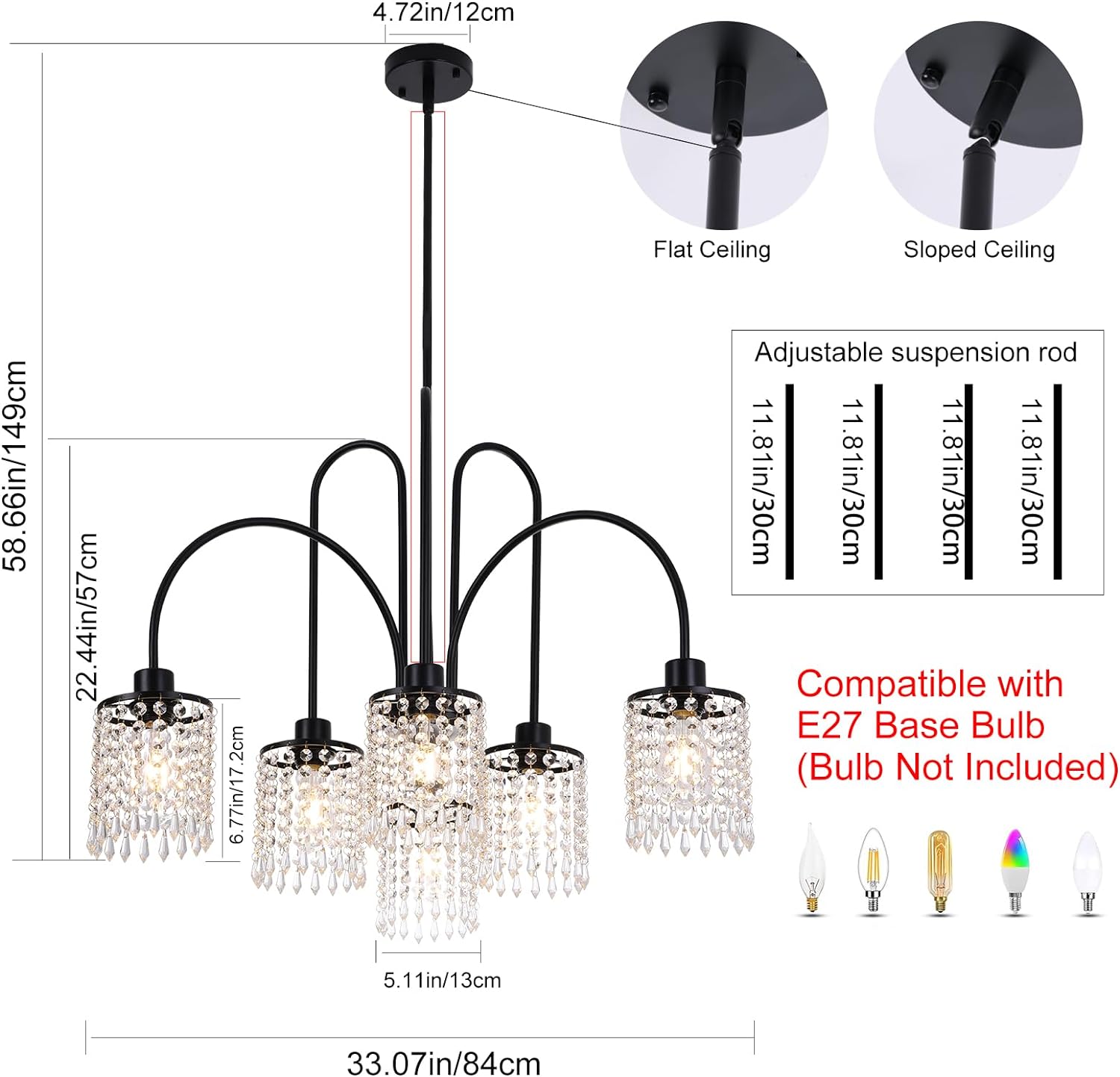 - Light Source &Dimmable: The dining room chandelier uses 6x E27 base bulbs(Not included), compatible with Incandescent, LED, Halogen, CFL, etc. The maximum acceptable power per bulb is 60W. When paired with a dimmable bulb and compatible dimmer switch (Not included), You can choose different color temperatures to match your home decor.