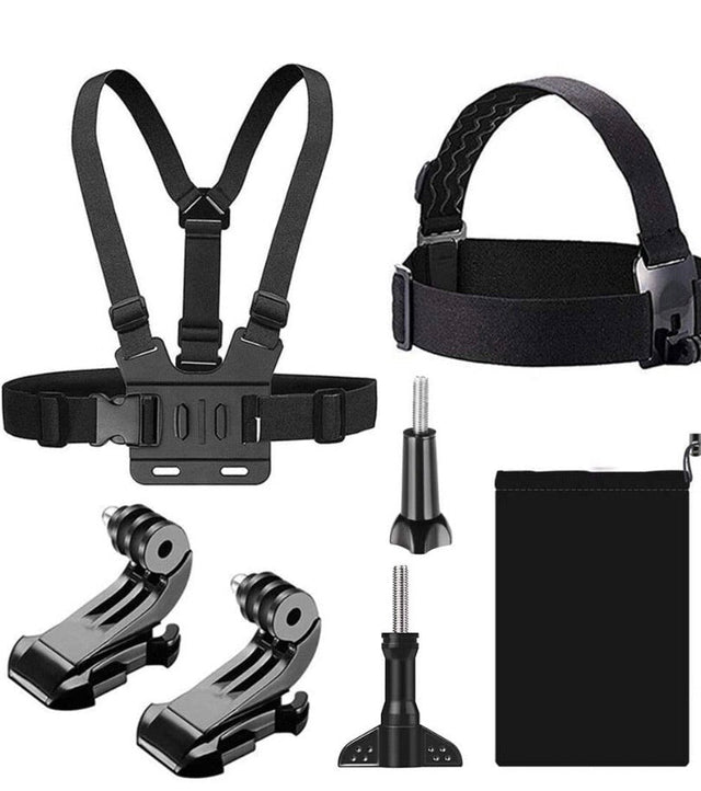 - BUNDLE PACKAGE: Special 7 in 1 Value Package. Package Includes: 1x Head/Helmet Mount, 1x Chest Mount Harness, 2x Surface J-Hook Buckle, 1x Long Tail Screw, 1x Screw, 1x Carrying Case