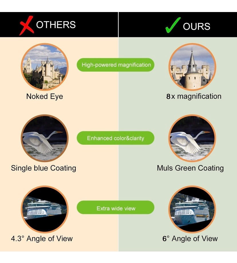 - Compact Binoculars Clear vision: 8x21 optics binoculars with a 8X magnification and objective lens diameter of 21 mm, What's more is with the large field of view-369ft/1000 yards&131m/1000m, you can see the entire visual field for capturing objects easily.
