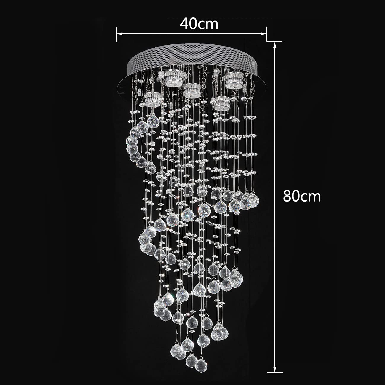 Elegant Spiral Crystal Chandelier Lights, Clear K9 Crystal Raindrop LED Ceiling Lights Chrome Flush Mount Pendant Lamp Fixture for Livingroom Dining Room Hallway Stairway Foyer D40cm H80cm A1A9 is backordered and will ship as soon as it is back in stock.