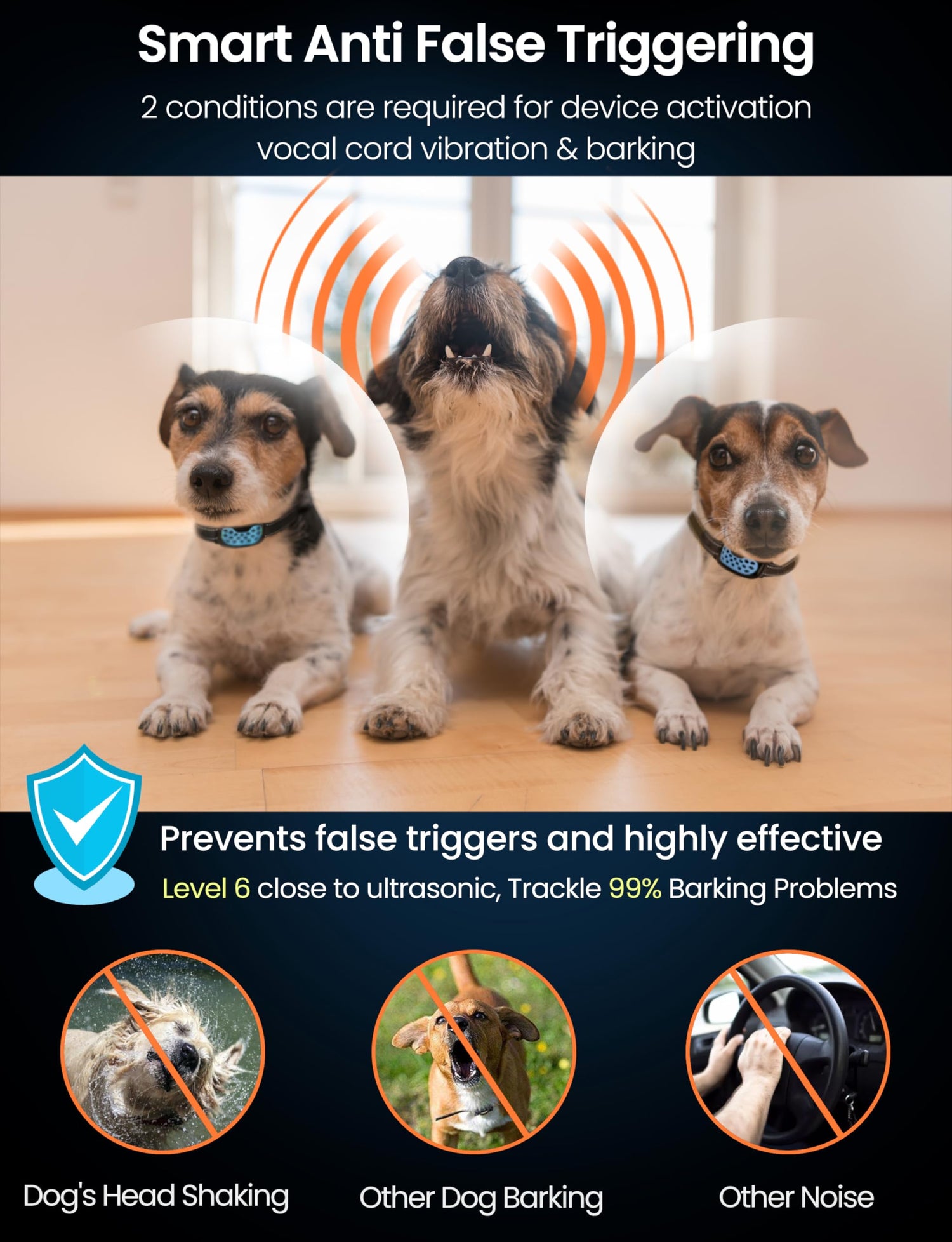 - Smart Bark Collar: Designed with a smart microphone that only responds to your dog's unique bark! And the 5 sensitivity levels make the collar can be adjusted to match environmental noise, preventing unnecessary triggers. Full Color Display, One-Touch "Fast M" Mode Switching, With Battery Indicator And Low Battery Reminder Function.