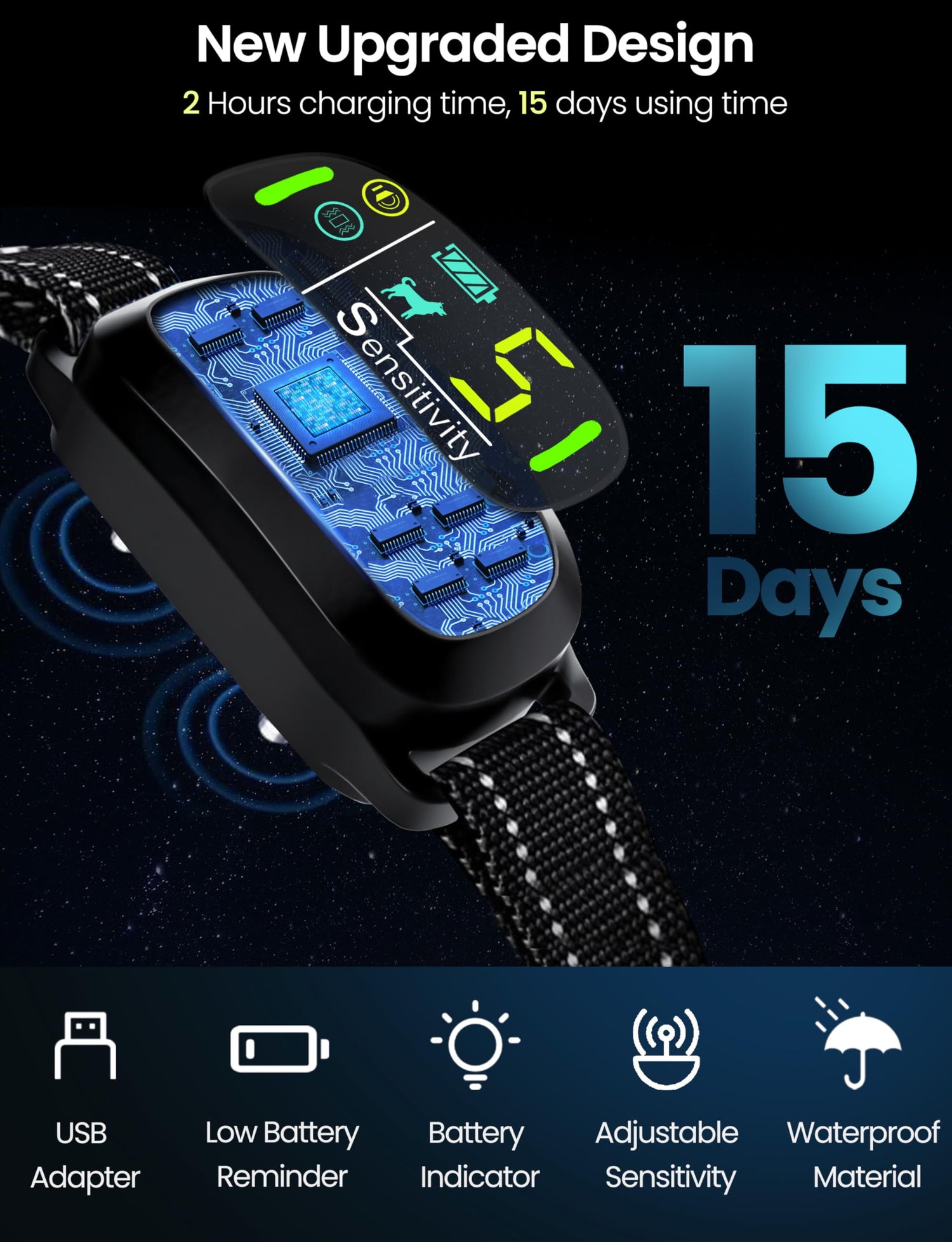 - Smart Bark Collar: The Advwin dog training collar designed with a smart microphone that only responds to your dog's unique bark! And the 5 sensitivity levels make the collar can be adjusted to match environmental noise, preventing unnecessary triggers. Full Color Display, One-Touch "Fast M" Mode Switching, With Battery Indicator And Low Battery Reminder Function.