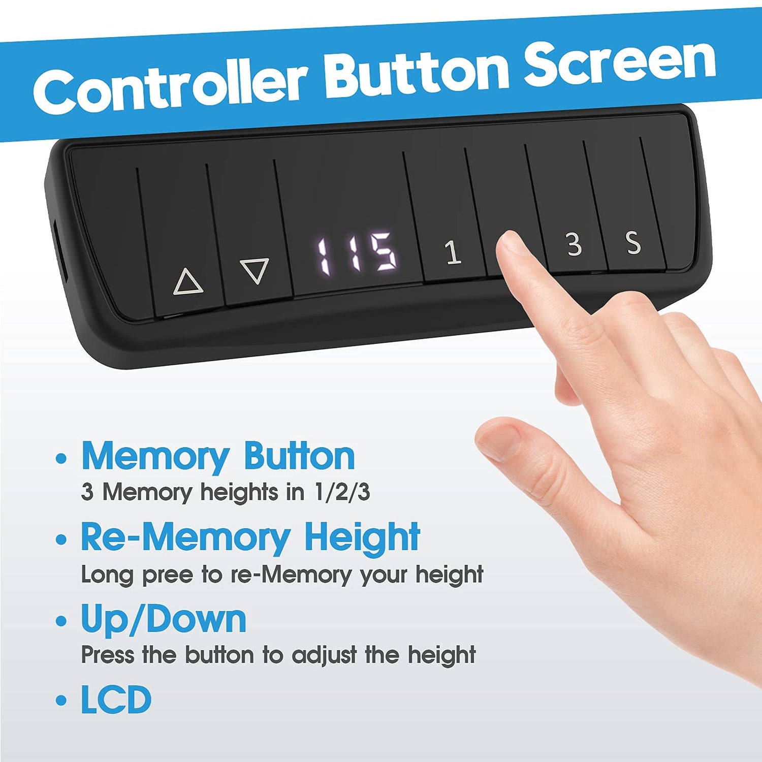 - LED MEMORY CONTROL PANEL- A 6-button controller with 3 programmable memory presets lets you set desired desk heights for convenient switching from sitting to standing position. Finding a healthy balance between sit and standing helps you maintain good blood flow and happy legs throughout the day.