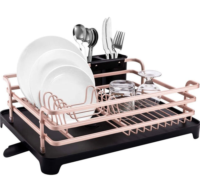 - PRACTICAL CAN BE BEAUTIFUL ā THIS DISH DRYING RACK PROVES IT! upgrade your kitchen with our beautiful copper dish rack with drainboard, a unique aluminium dish drying rack is the perfect complement to copper kitchen accessories or dĆ©cor; a great gift idea for cooking fans, dĆ©cor enthusiasts, new homeowners, or newlyweds