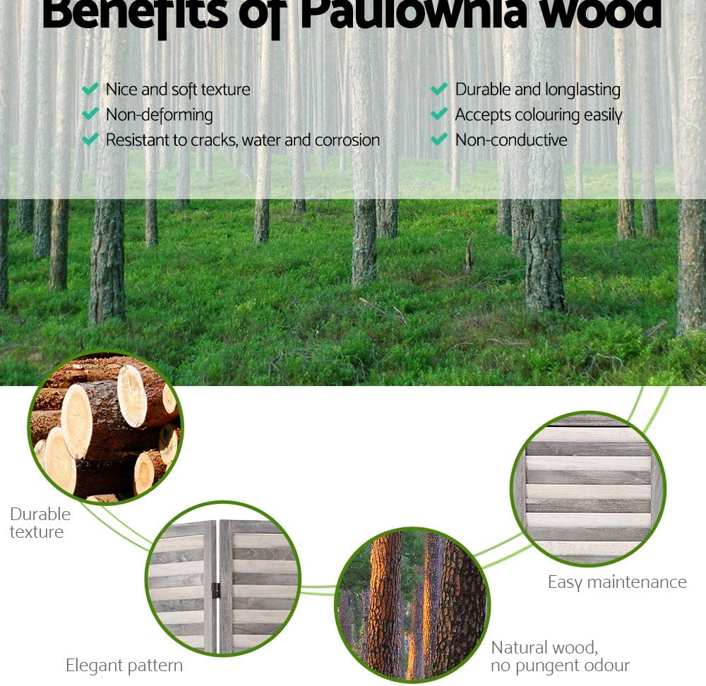 Made from solid Paulownia wood, our 6-Panel Divider has a number of advantages with its quality woody construction. Paulownia wood has a nice and soft texture that is resistant to cracks, water, and corrosion. It also does not deform and is extremely durable. More importantly, Paulownia wood accepts coloring easily. And because of that, an eco-friendly water-based paint is used on our Divider that is non-toxic, non-fade, waterproof, and breathable.