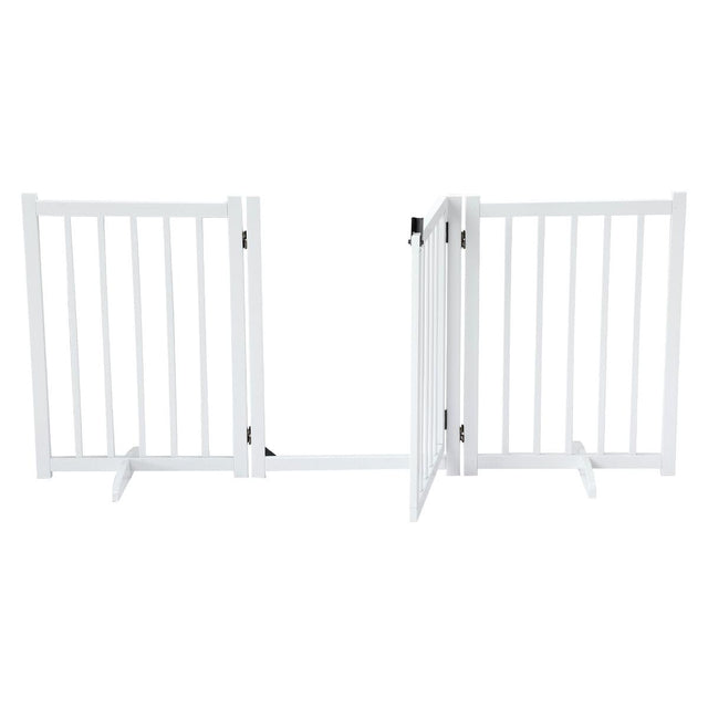 Freestanding Dog Gates with Walk Over Door,Pet Dog Gate Wooden,Foldable Dog Fence Pet Gate Puppy Safety Guard,Indoor Pet Playpen Cat Barrier Protection Net Stair Partition,White with 3 Panels