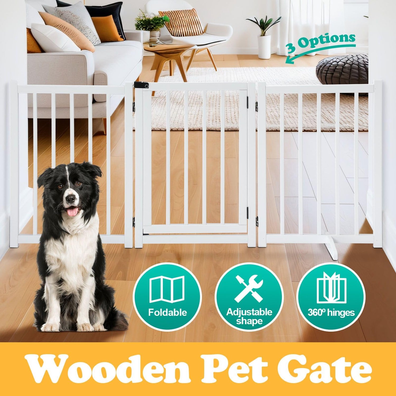 Freestanding Dog Gates with Walk Over Door,Pet Dog Gate Wooden,Foldable Dog Fence Pet Gate Puppy Safety Guard,Indoor Pet Playpen Cat Barrier Protection Net Stair Partition,White with 3 Panels is backordered and will ship as soon as it is back in stock.