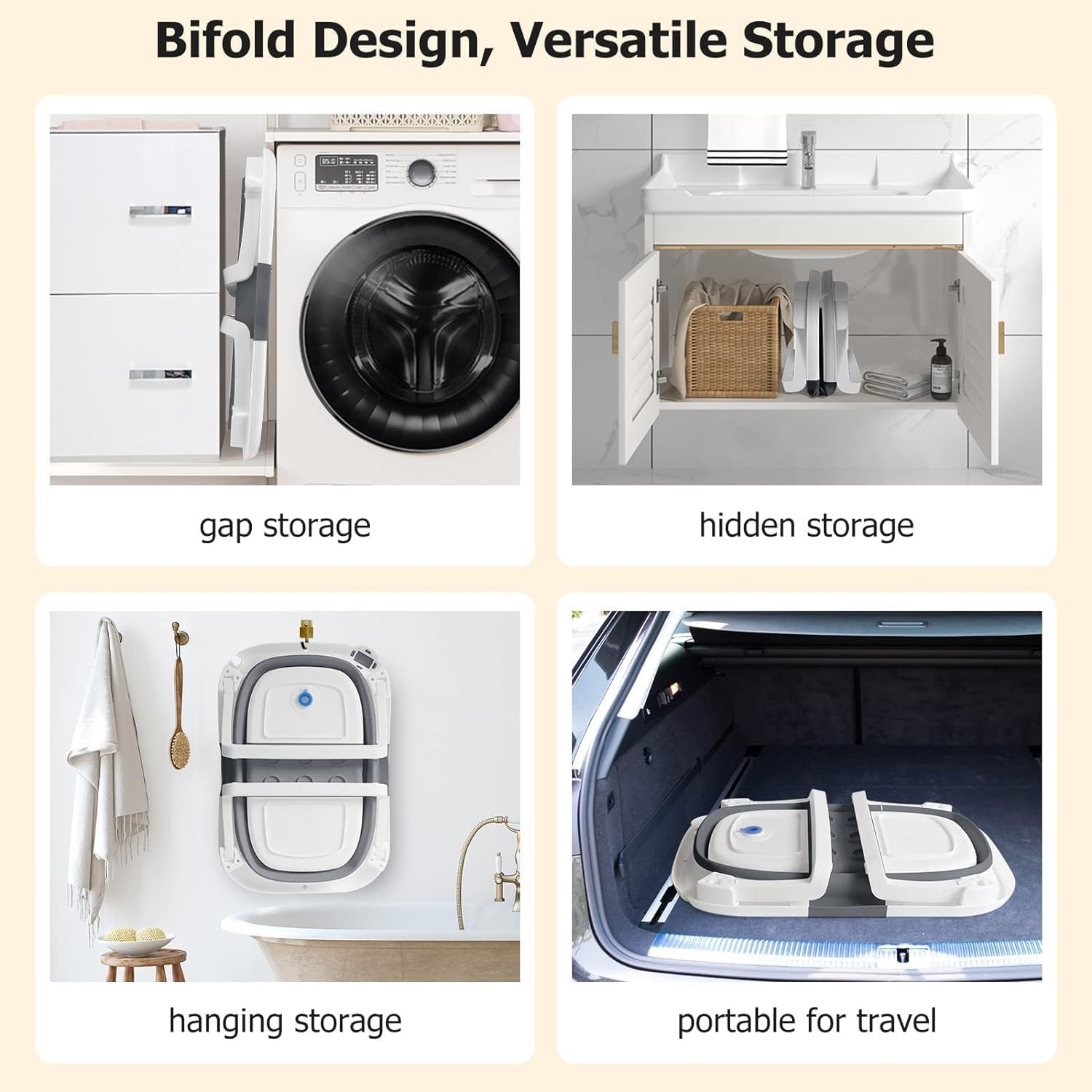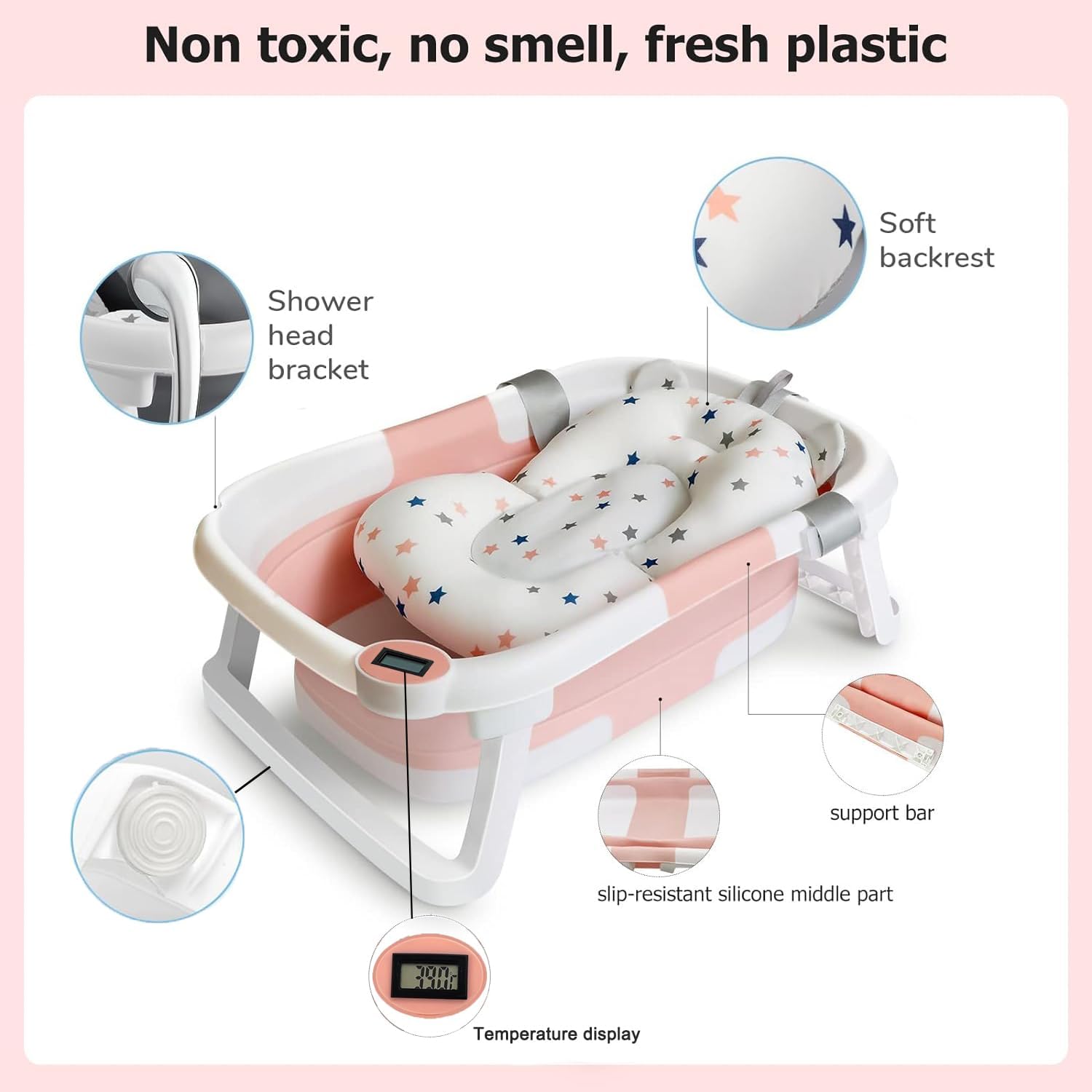 Baby Bath Tub Foldable Bathtub, Newborn Baby Plastic Bathtub with Cushion Pad Foldable Anti-Slip Legs Collapsible Tub for Toddler Baby Kids Bathing - Childrens Travel Shower Bath Tubs
