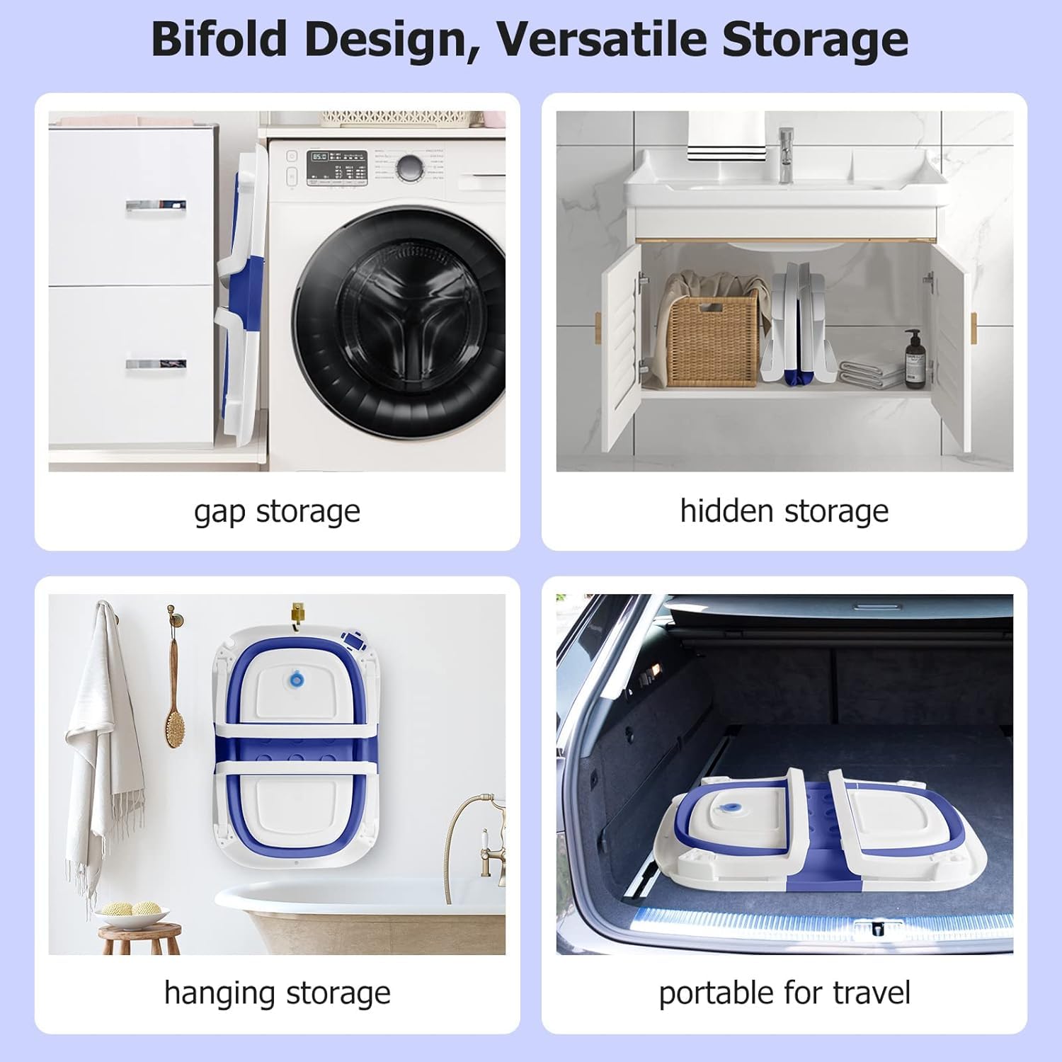 Baby Bath Tub Foldable Bathtub, Newborn Baby Plastic Bathtub with Cushion Pad Foldable Anti-Slip Legs Collapsible Tub for Toddler Baby Kids Bathing - Childrens Travel Shower Bath Tubs - Blue is backordered and will ship as soon as it is back in stock.
