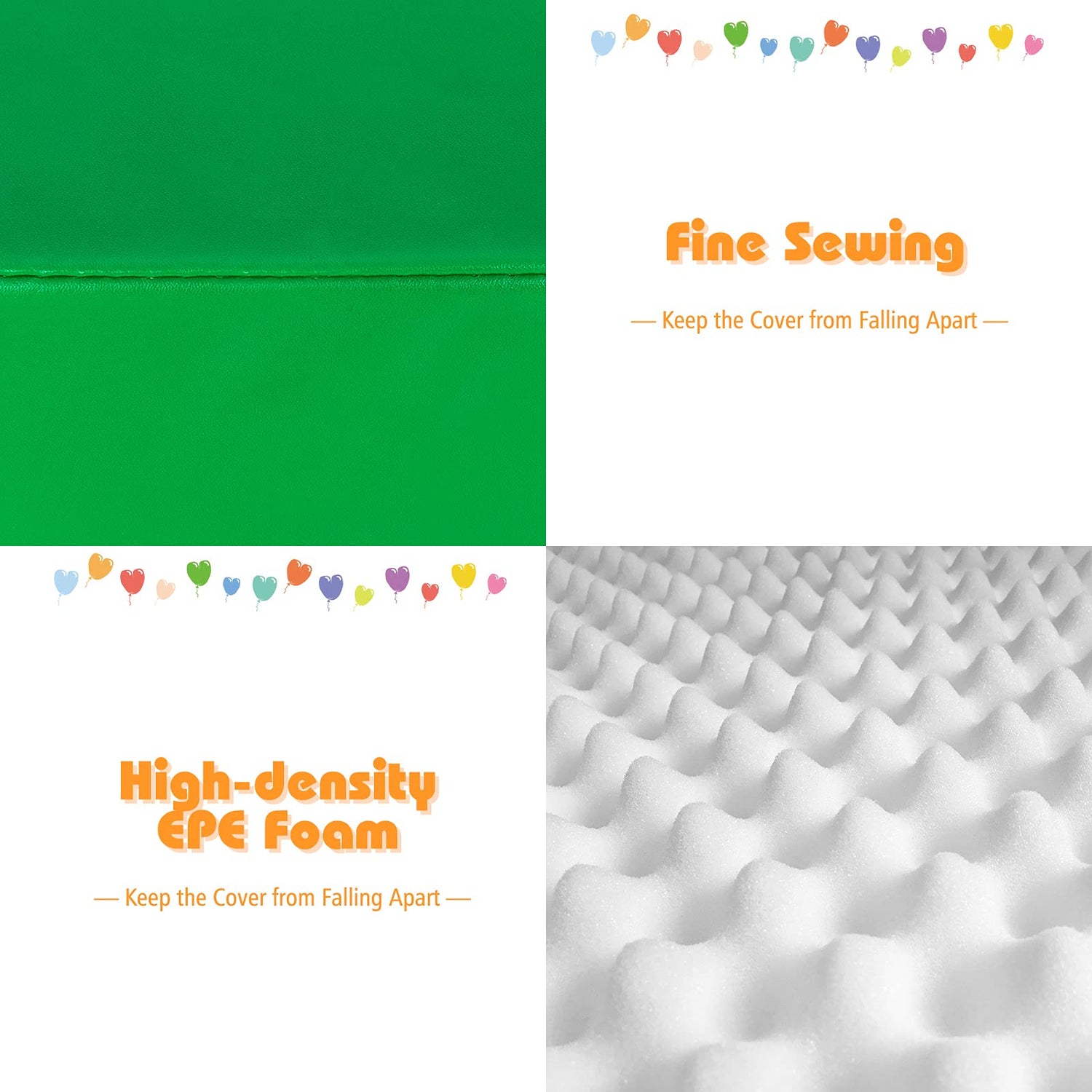 - Easy to Clean & Maintain: Our soft play set is not only durable, but also very easy to clean. Even if kids accidentally drop a snack or drink, dirty things can be wiped immediately because of waterproof PU material covering all over the set, which saves time and manpower.