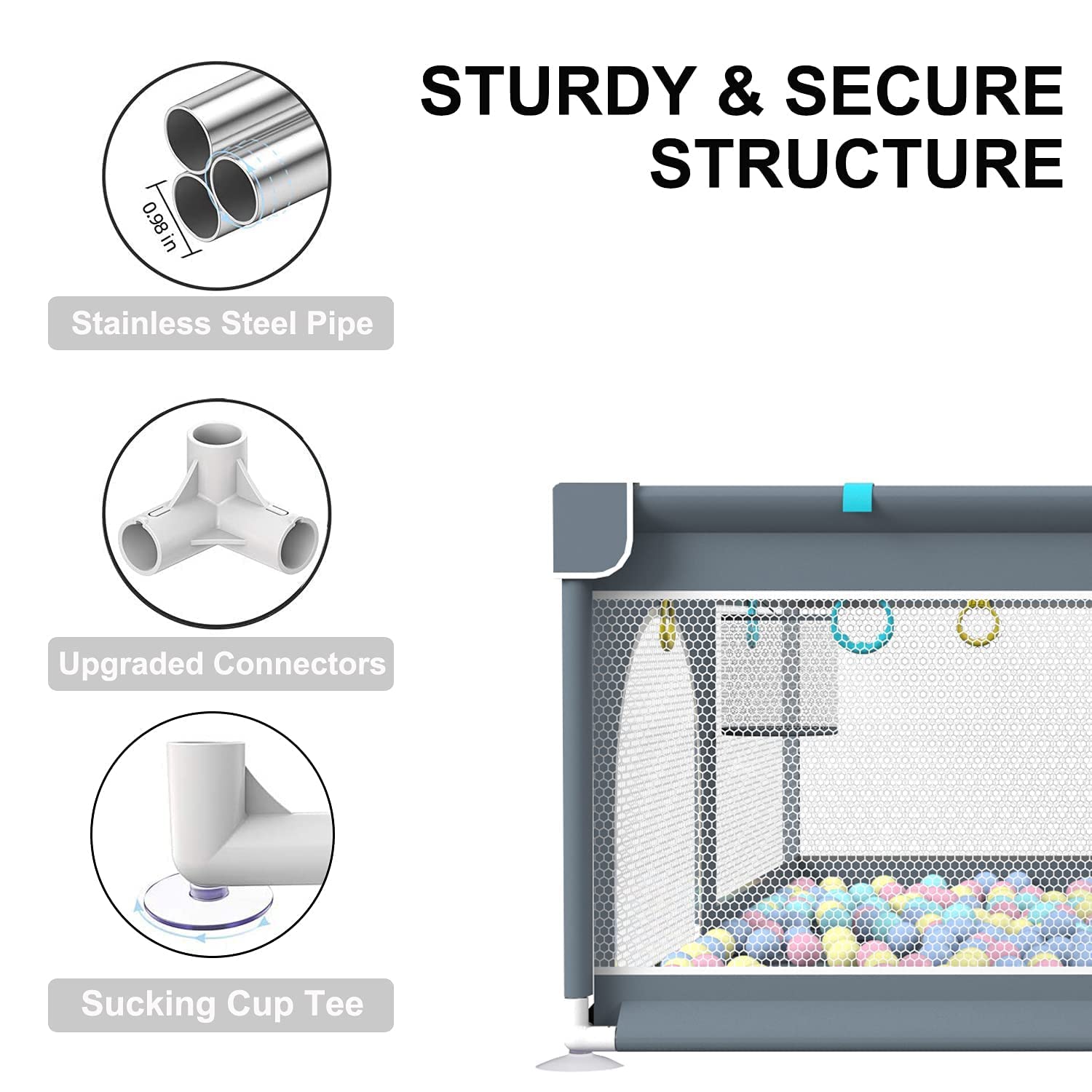 - Safe & Non-slip: The baby playard fence is made of resistant-duty oxford material & strong fabrics net sidings, BPA free, easy clean. The non-slip suction cups on the bottom of the panel make it difficult to tip over and move.