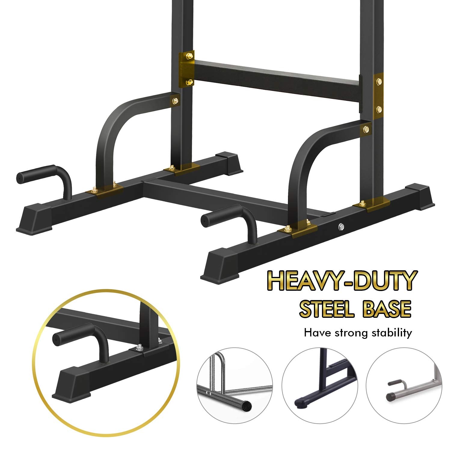 - High Quality Guarantee The sturdy power tower is made of a thick heavy-duty steel structure with high-density foam rubber handles and handrails. All nuts are non-slip nuts. To prevent the nut from falling during vibration.
