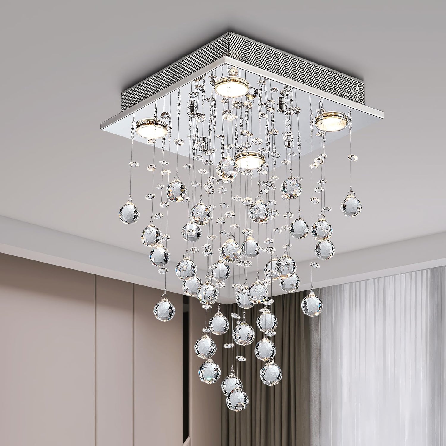 Modern Crystal Raindrop Chandelier Lighting Flush Mount LED Ceiling Light Fixture Pendant Lamp for Dining Room Bathroom Bedroom Livingroom 4 GU10 LED Bulbs Required Width 35 cm Height 50 cm is backordered and will ship as soon as it is back in stock.