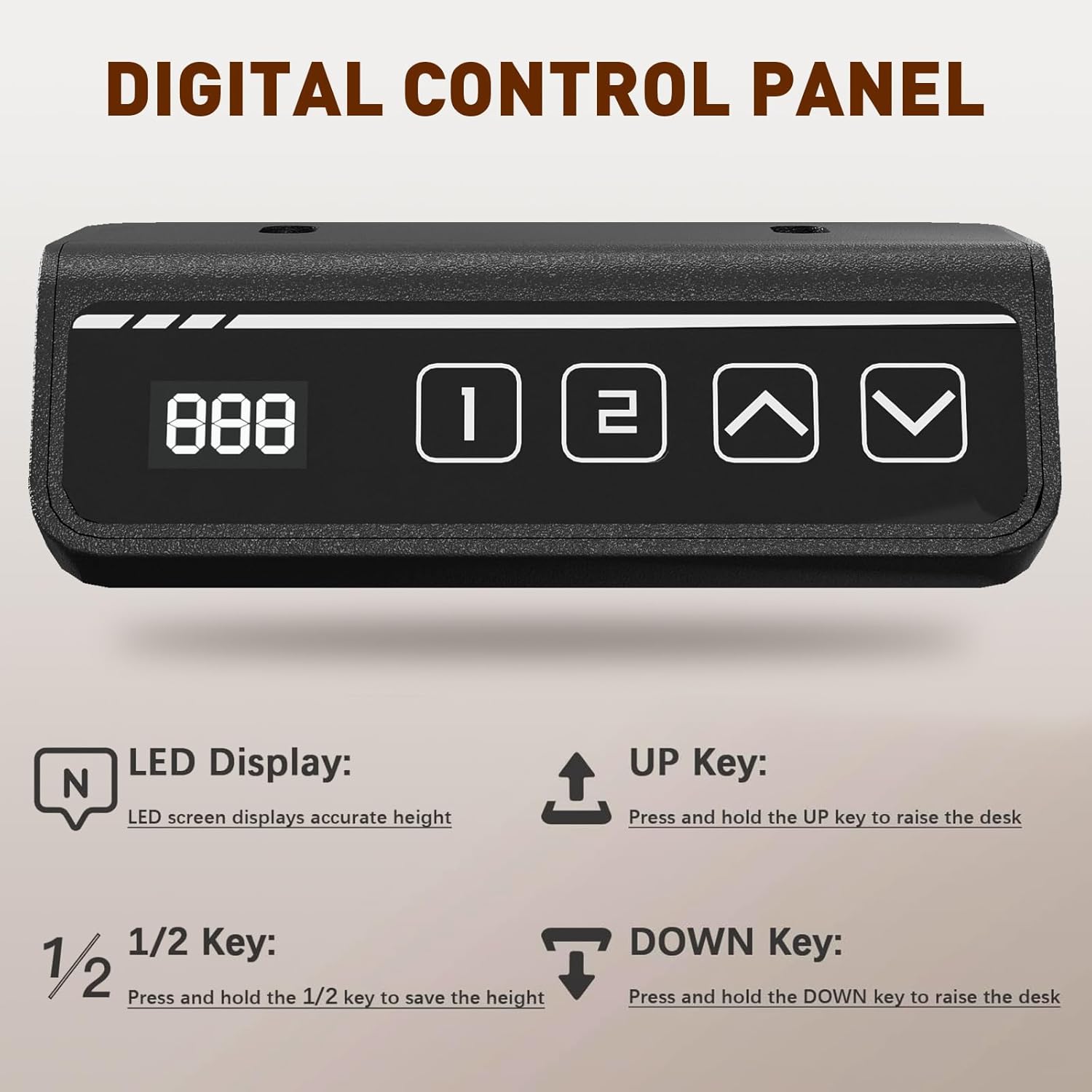 - Memory Electric Liftļ¼Compared with ordinary desks, our standing desk can be easily adjusted in height by pressing a button, allowing people of different heights to use it in various scenarios. The 1/2 memory key design enables it to quickly and accurately adjust to your preset comfortable height. The motor system also includes a safety lock function and overheat protection.