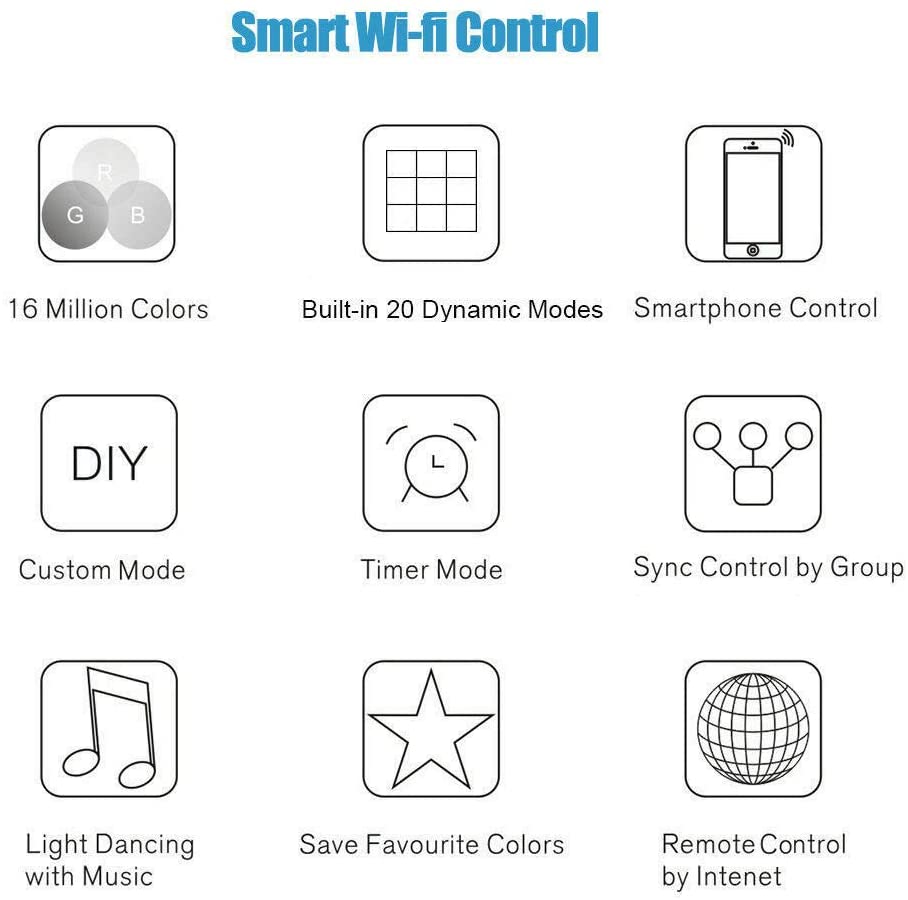 • WIFI WIRELESS CONTROLLER: Take complete control of your lighting with Magic home Pro APP; Create romance, relaxation, party ambiance with Music and Mic function; Remote control allows you turn on/off the led strip lights from anywhere; Timer function of the wifi controller make you wake up at your favourite colour, keep you on Schedule