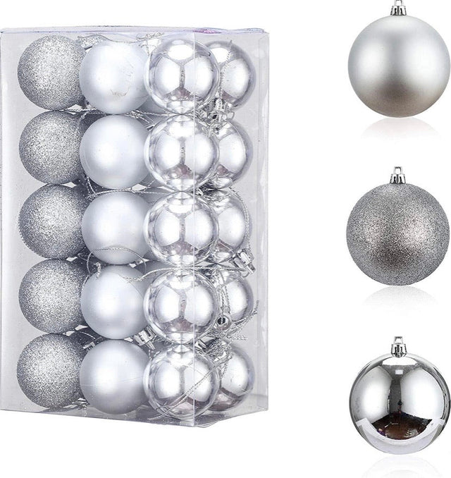 Christmas Decorations, 24 Pack 3CM Christmas Balls Ornaments for Xmas Tree - Shatterproof Christmas Tree Decorations Large Hanging Ball Pink 3CM x 24 Pack(Silver)