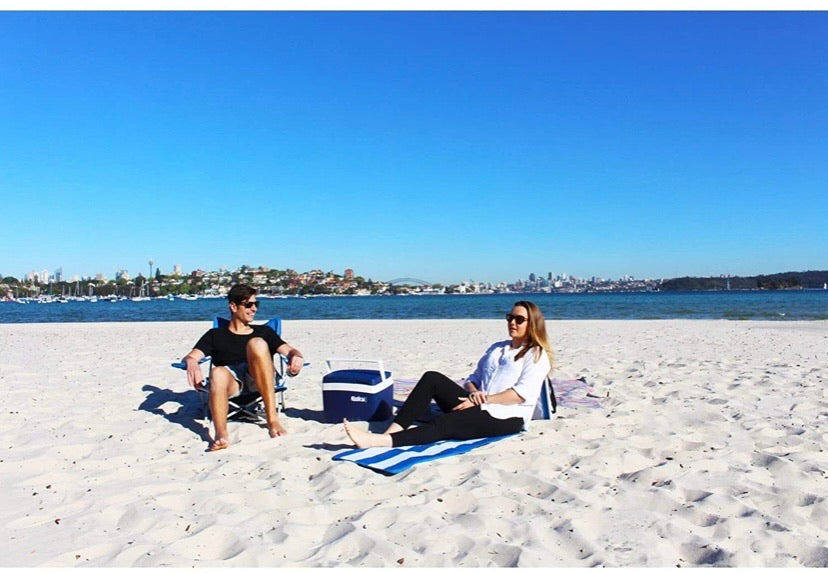 Relax in style with the Blue and White Coleman Beach Mat. The A-frame design can lay flat or sit upright and is perfect for beach, park and other outdoor use!