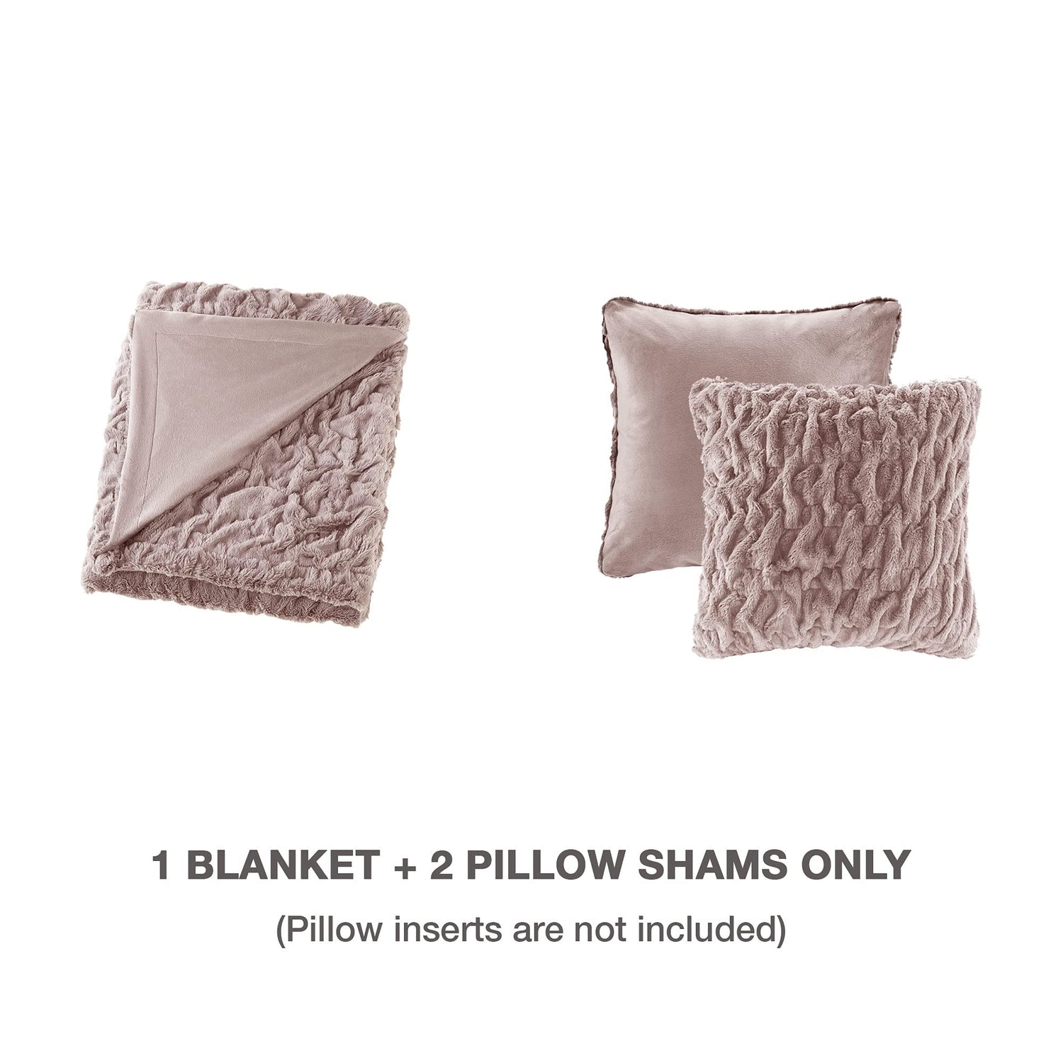 Comfort Spaces Ruched Faux Fur Plush 3 Piece Throw Blanket Set - Pink is backordered and will ship as soon as it is back in stock.