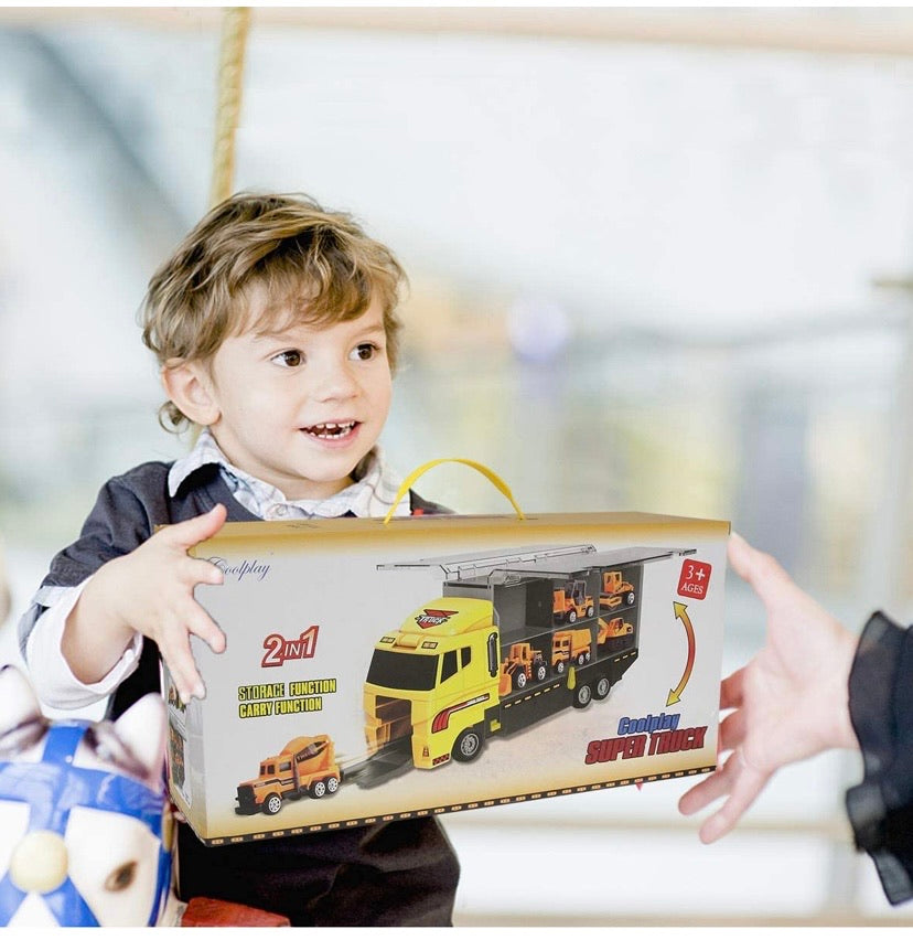 - VALUE VEHICLE SET - Coolplay 11 mini construction truck toy set in different designs and functions in one carrier truck, including helicopter, wheel loader, dump Truck, bulldozer, excavator, mixer, backhoe, road roller, and so on.