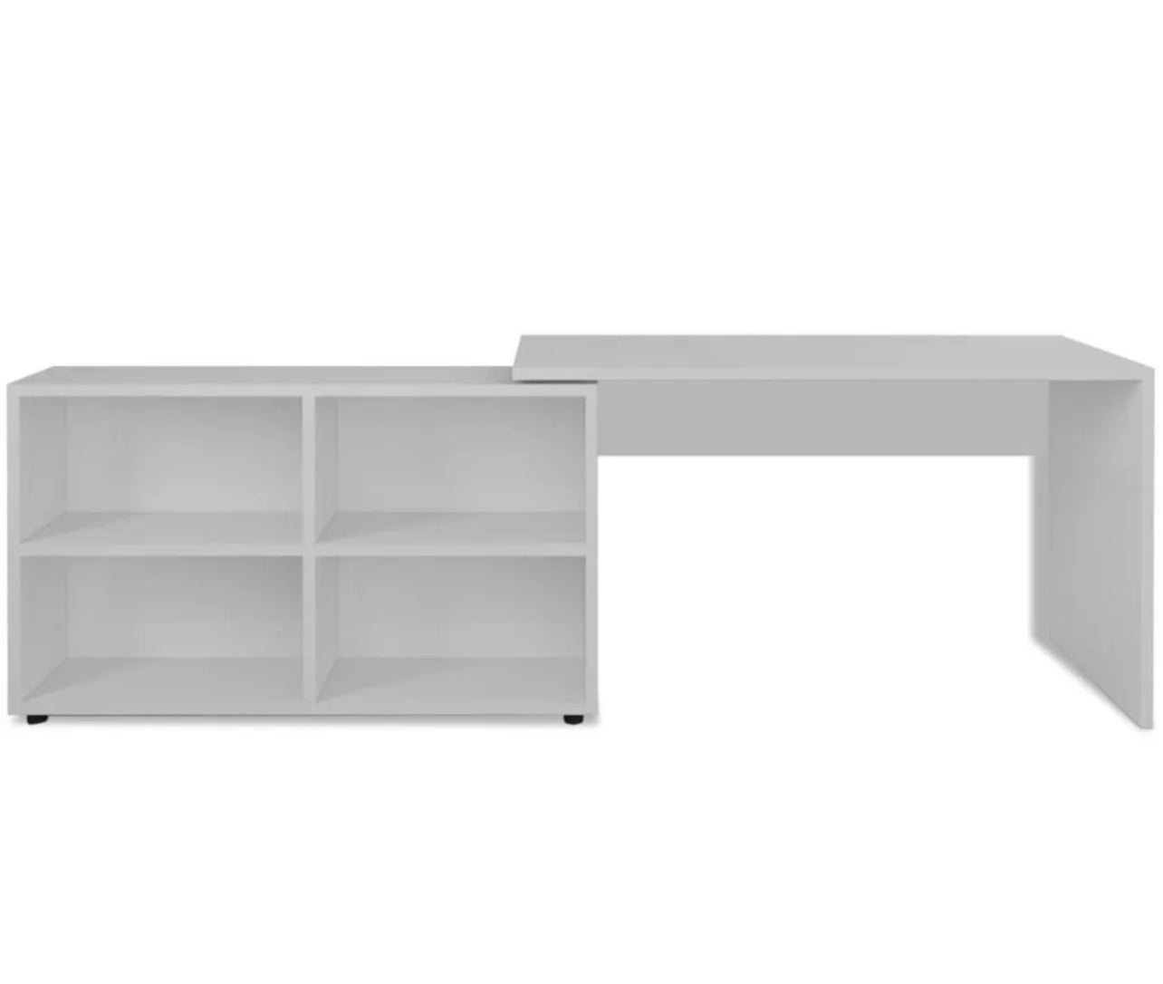 This stylish, functional office desk will make a great addition to any home or office. This modern computer desk consists of 1 table and 1 bookcase with 4 shelves. It can be assembled into either a desk with the bookcase in line or an L-shaped corner desk. Assembly is easy. This corner desk is made of high-quality material, making it sturdy and durable. The storage cabinet has 4 shelves with ample storage space.