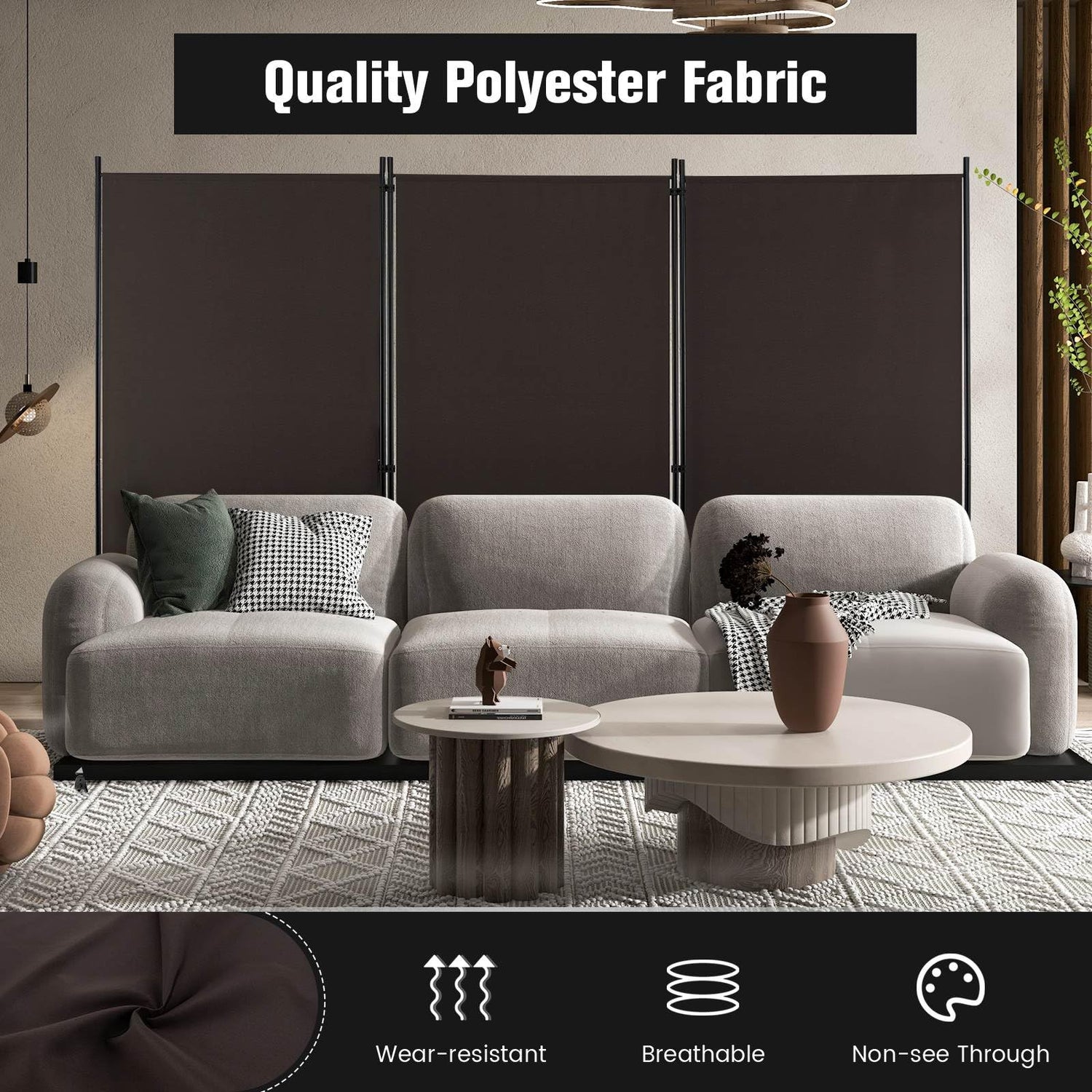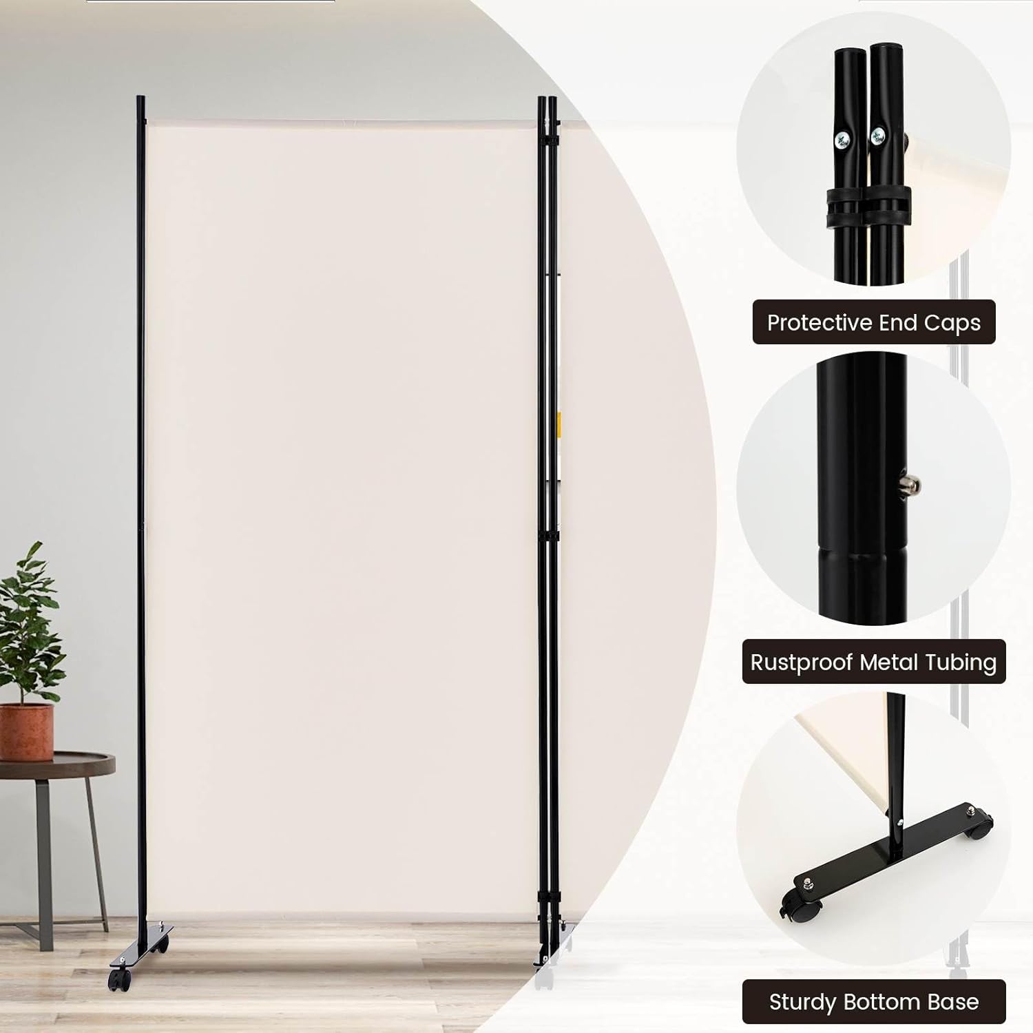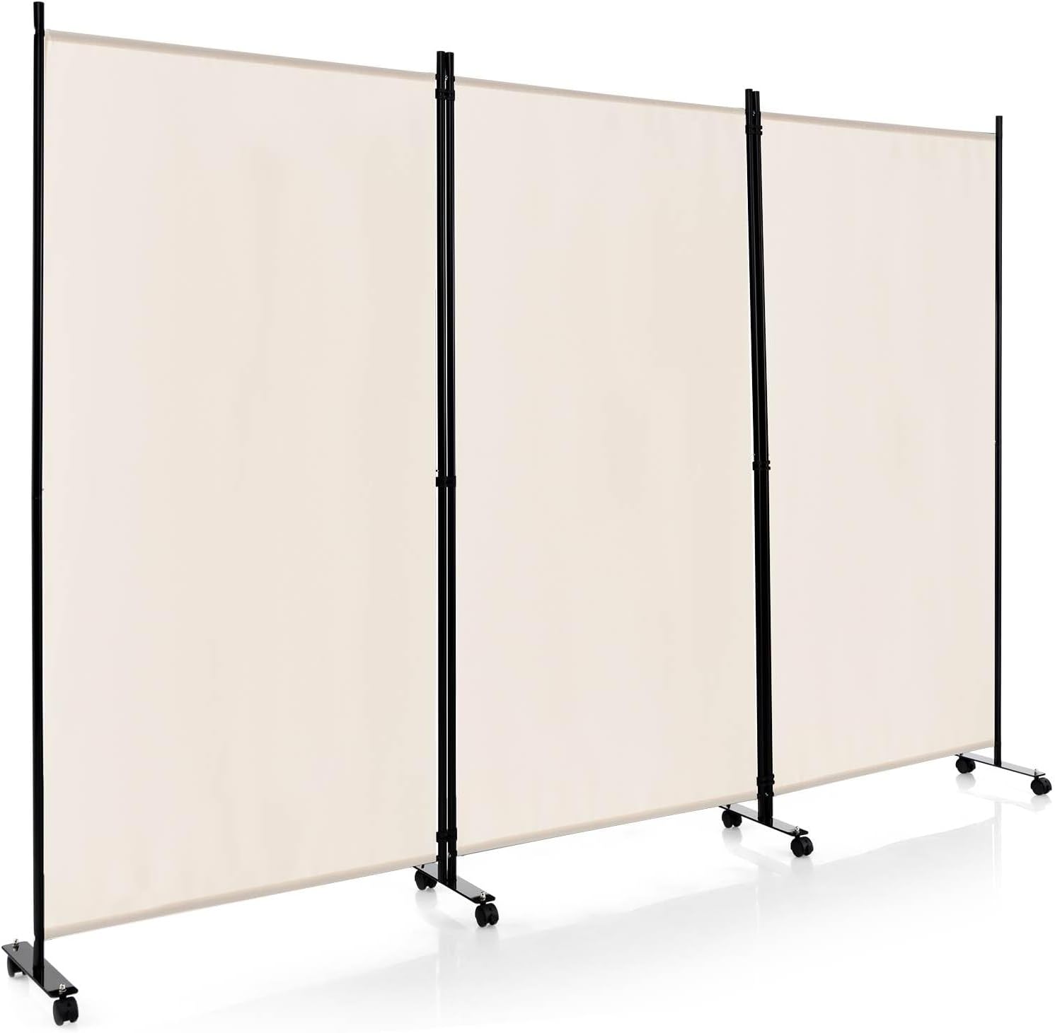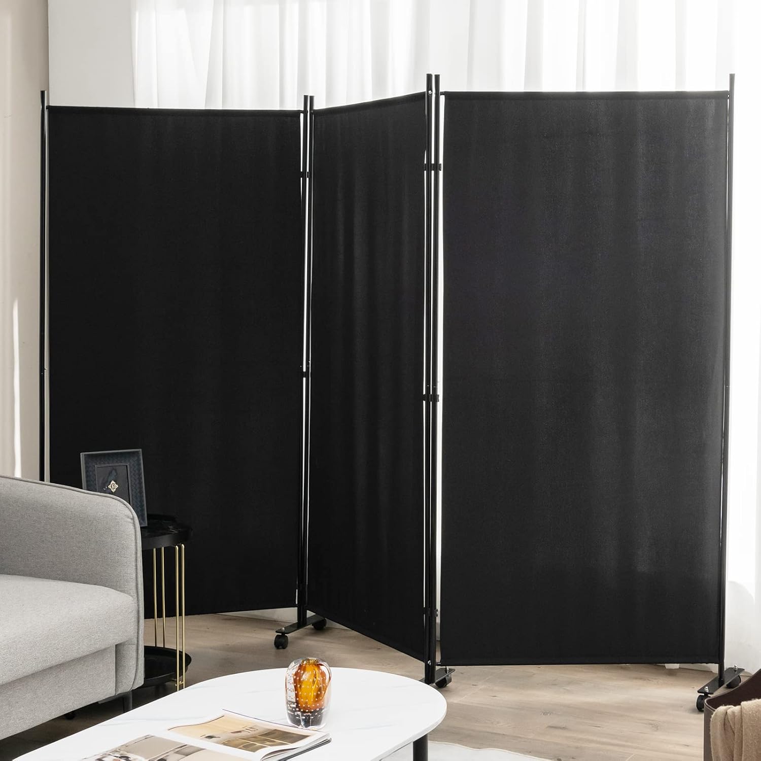 This 3-panel privacy screen is perfect for creating a separate and comfortable space, especially in living rooms, hospitals, schools and offices. This 6FT wall divider not only provides a private space in the room but also can be placed in front of your window to block sunlight. This freestanding wall divider features a premium polyester panel supported by a sturdy metal frame to ensure long-term durability and reliable use. The fabric panel is designed to protect your privacy and make your personal living space more comfortable.?The flexible connect buckle design makes it easy to adjust each panel in multiple positions. Equipped with 4 universal wheels, the screen moves very smoothly around your home. The wheeled room divider, with a simple and elegant outlook, is an excellent furniture decoration.
