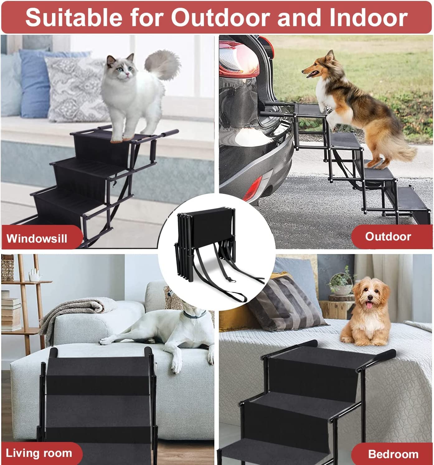 - 4 Step Pet Stairs: Our CULOTOL pet stair has 4 steps. So these folding dog stairs easy for your pets to climb on and off indoor furniture like a high bed and sofa, and are suitable for outdoor use for getting into or out of your car effortlessly.