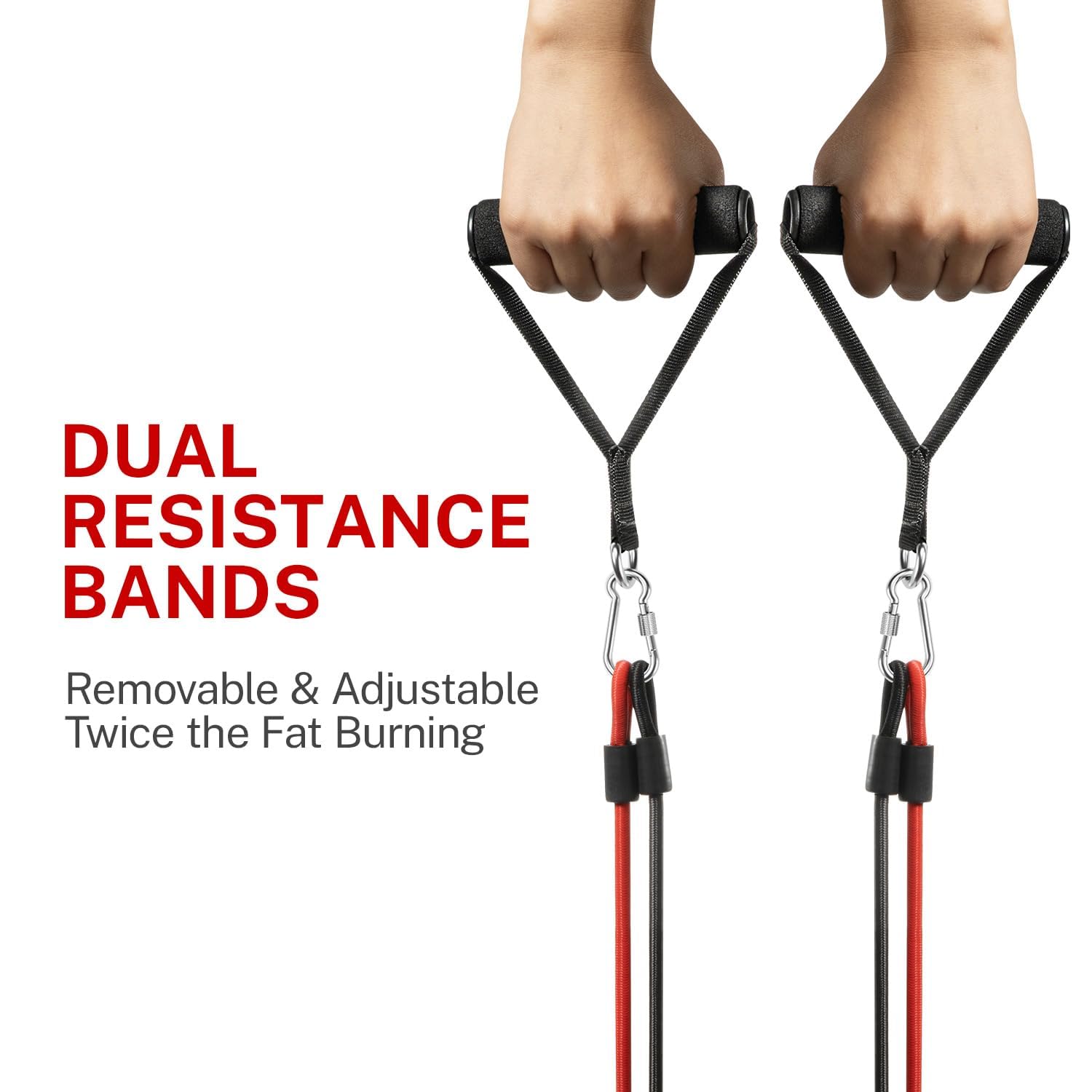 • DUAL RESISTANCE BANDS: Removable and Adjustable, offer a variety of workout options. You can choose to utilize a single resistance band for unilateral stretching exercises or incorporate both bands to intensify your training and experience a dual-burning effect, enhancing toning for your chest, back, and shoulders while engaging in low-impact aerobics. This helps you achieve a healthy and sculpted figure