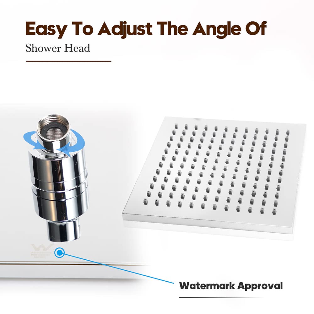 • The 8-inch wide panel contains 144 precision-designed high-pressure nozzles, bringing you a soothing rainfall shower experience.
