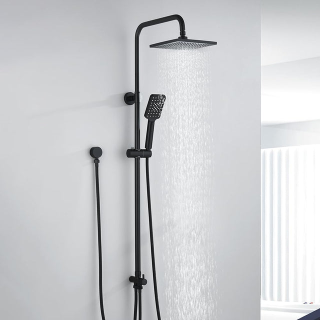 WELS Twin Hose Shower System 8" Rain Shower Head Set Sliding Rail 3-Mode Handheld Shower Head 2 in 1 Set (Square Head Black)