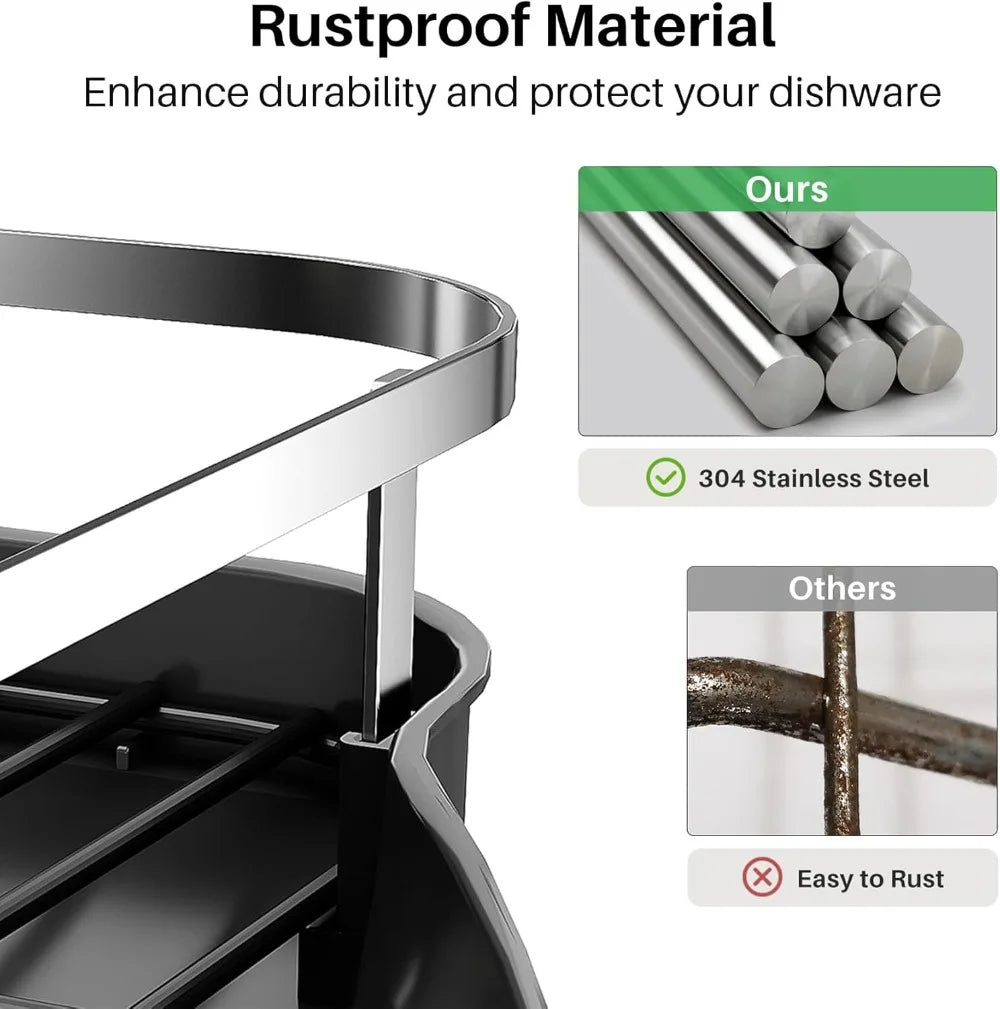 Dish Drying Rack, Expandable Dish Rack for Kitchen Counter, Stainless Steel Dish Drainer with Drainboard Set