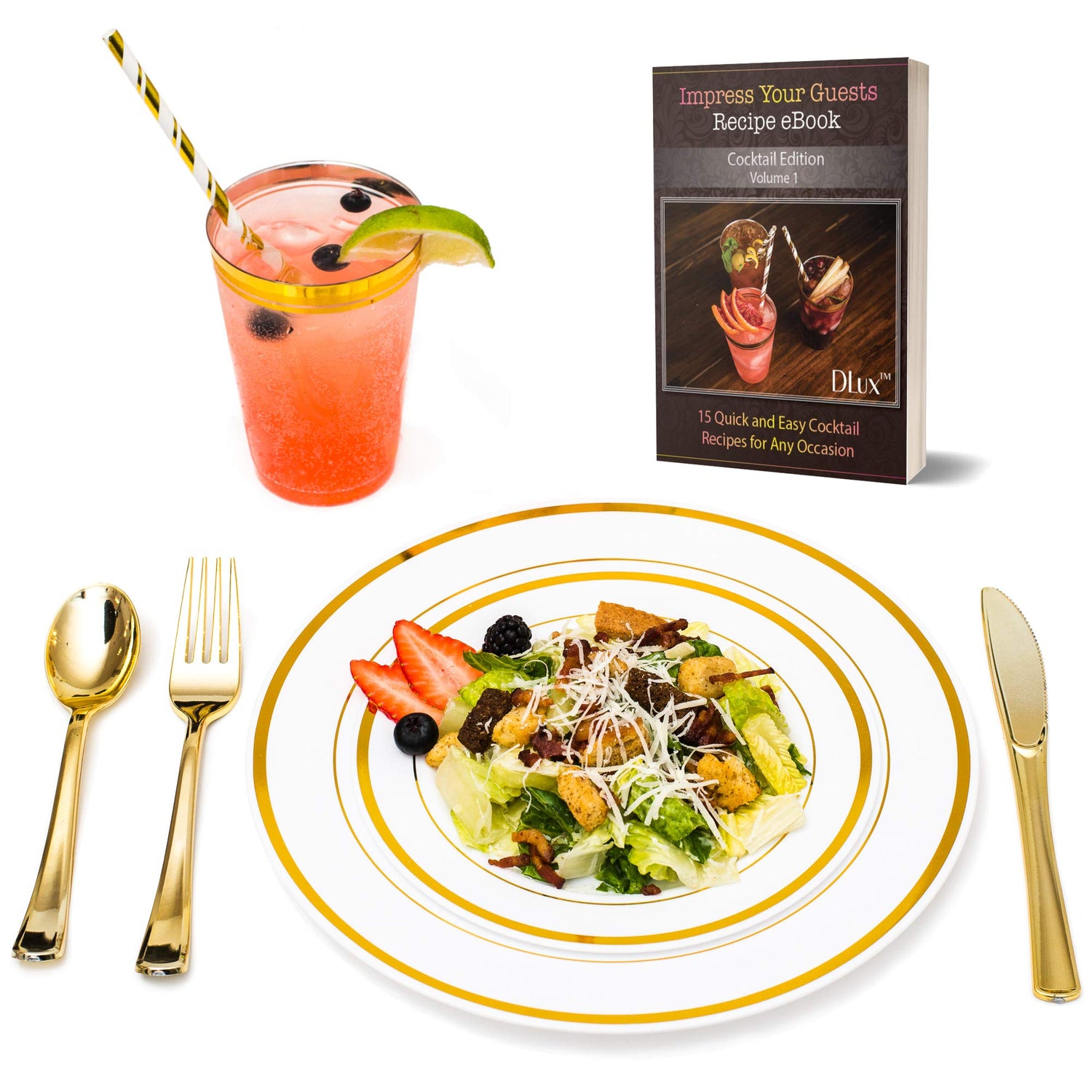 - šø IMPRESS YOUR GUESTS! Our Premium dinnerware looks so good they'll think it's the real thing until they touch it. Every purchase includes a DLux fancy drink recipe book to make fabulous cocktails your guests will love!