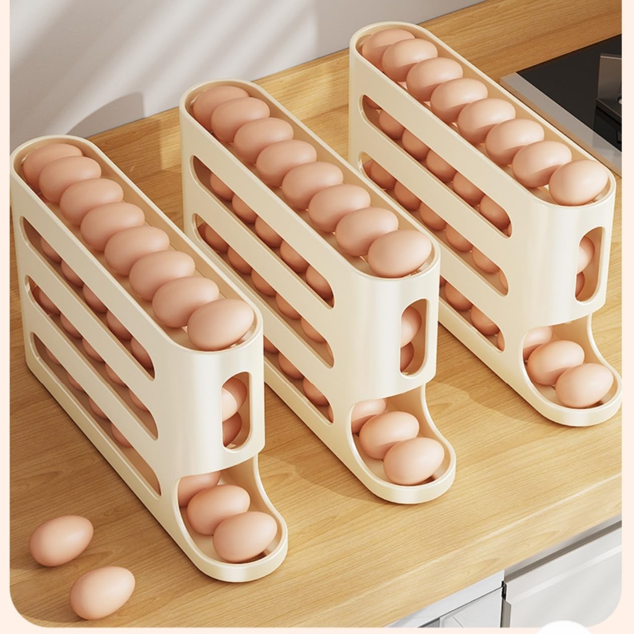 EggNest Holder for Fridge, Egg container for refrigerator,Automatic Rolling Egg Container, Space-Saving Rolling Eggs Dispenser, 4 Tiers Fridge Egg Rack for Refrigerator Holds up to 30 pcs