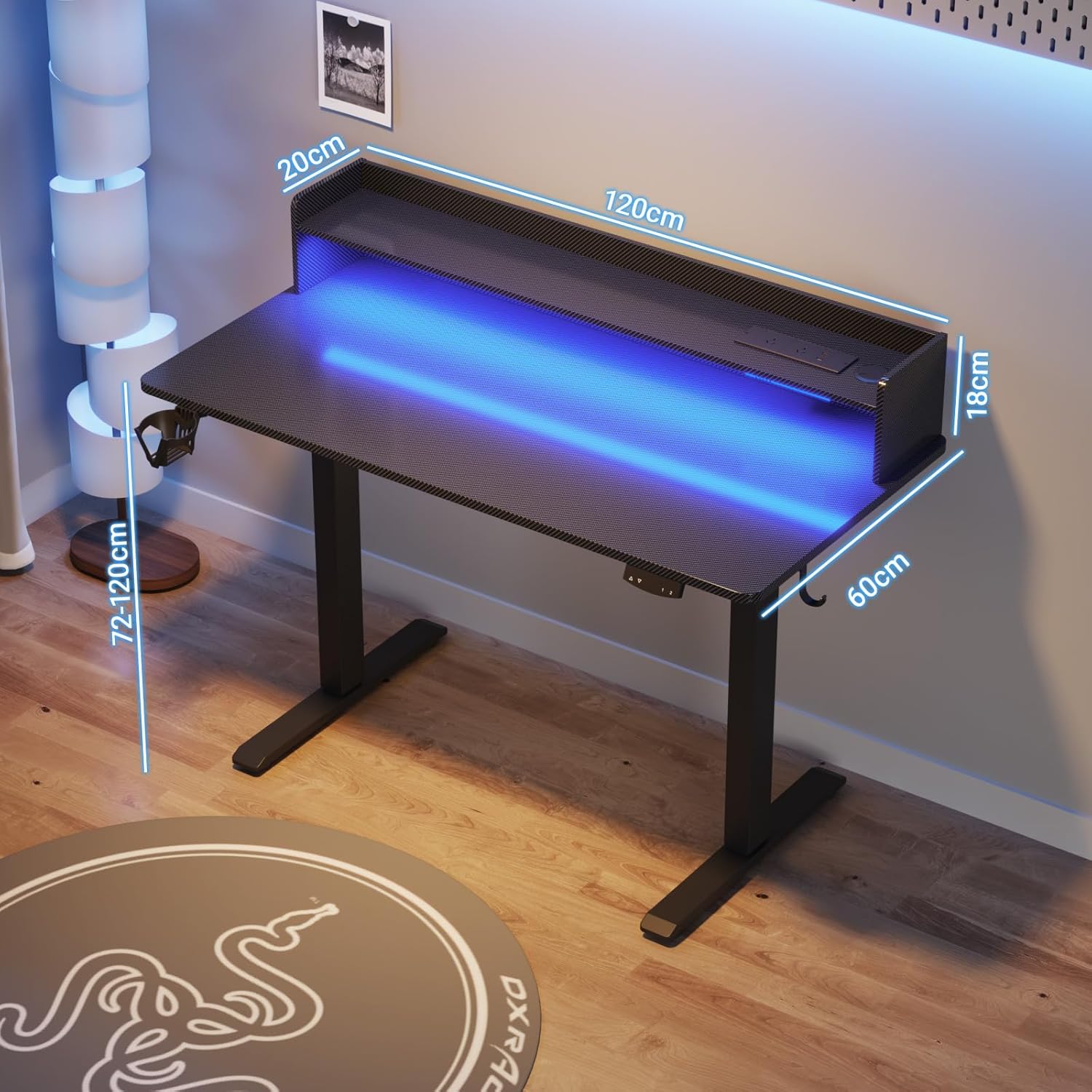 - Electric Height Adjustment: Our Electric Game Standing desk features 2 preset buttons, allowing you to customize your desired height from 72cm to 120cm. Safe load 70kg. With a focus on health, our electric height-adjustable desk helps alleviate the challenges of prolonged sitting. Achieve the perfect ergonomic setup for extended gaming or work sessions.