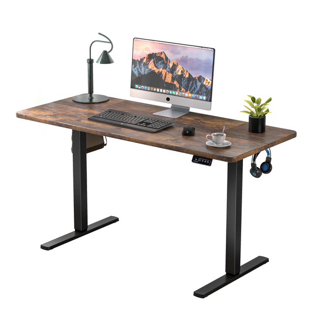 Electric Standing Desk 110x60cm (43.3"x23.6"), Height Adjustable Standing Desk with Splice Board, Stand Up Desk with Hook and Memory Smart Handset(Black Frame + Rustic Brown Desktop)