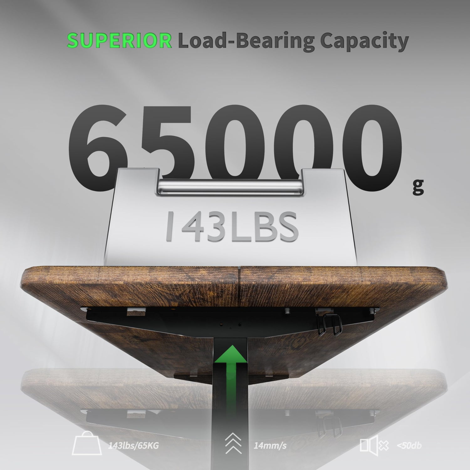 • SOLID CONSTRUCTION: Our standing desk is made of heavy-duty steel, with a weight capacity of 65KG (143 lbs) and travel speed of 14mm (0.55'') per second, keeps the desk stable even when it rises to the highest point. The soft start/stop functions make the sit stand desk move smoothly and quietly (<50dB).