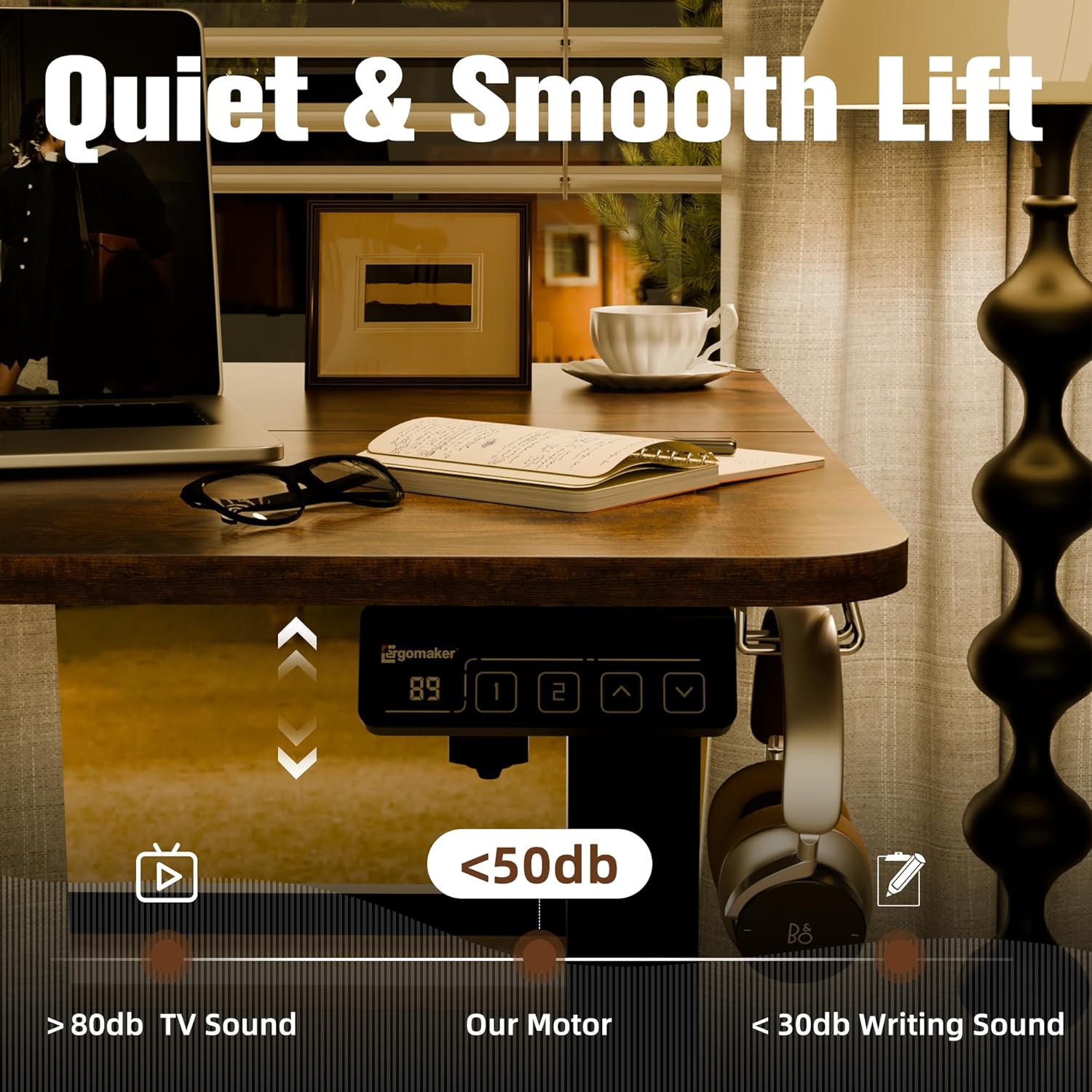 ERGOMAKER Electric Standing Desk 90x60cm (35.4"x23.6"), Height Adjustable Standing Desk with Splice Board, Sit Stand Desk with Hook and Memory Smart Handset(Black Frame + Rustic Brown Desktop)
