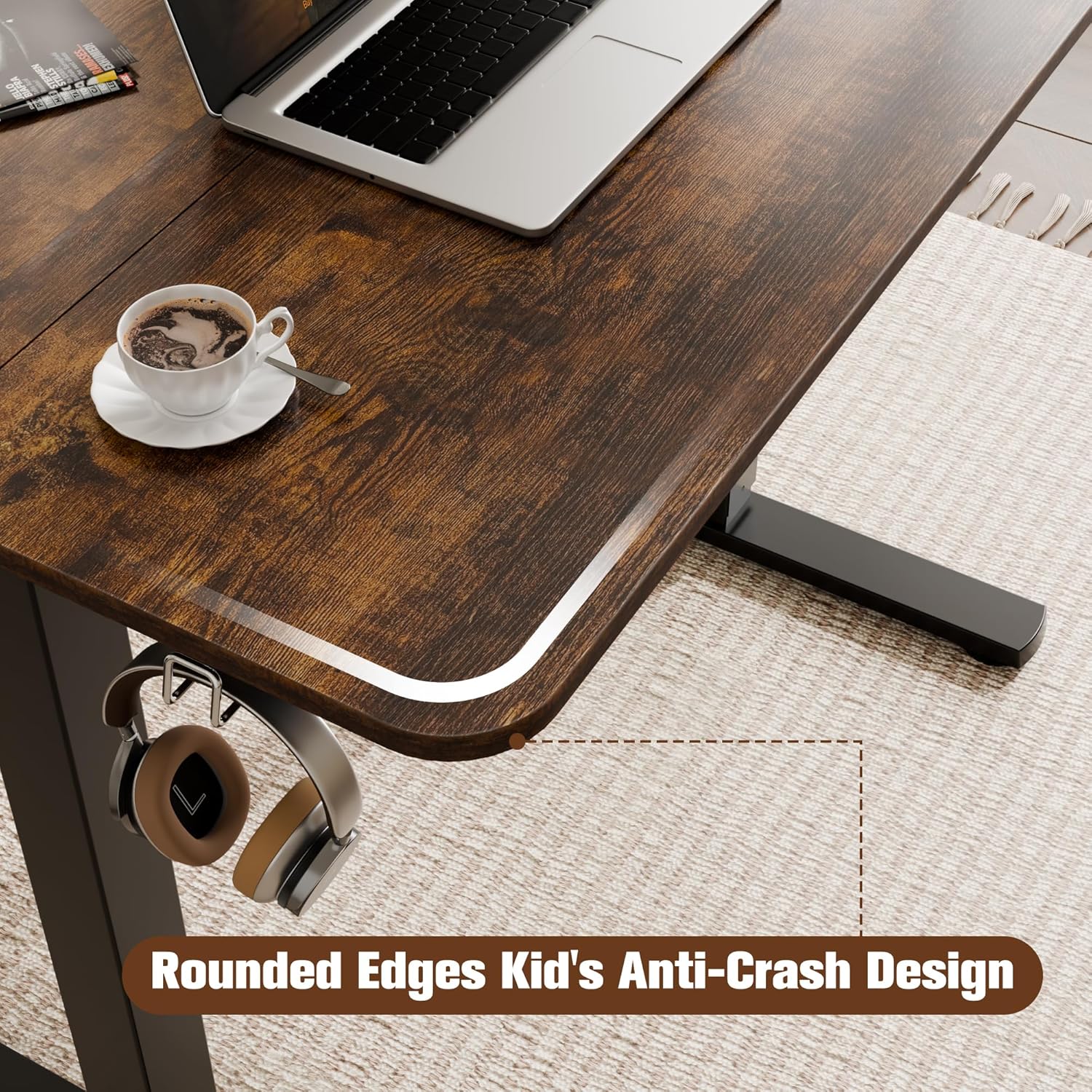 Electric Standing Desk 90x60cm (35.4"x23.6"), Height Adjustable Standing Desk with Splice Board, Sit Stand Desk with Hook and Memory Smart Handset(Black Frame + Rustic Brown Desktop)
