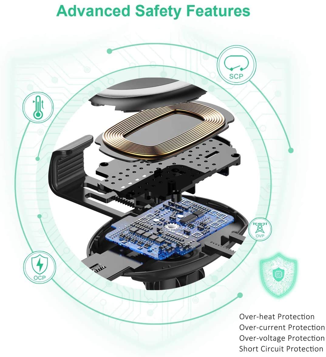• Safer Wireless Car Charger Mount: Engineered in full compliance with standards, built in with over-voltage protection, temperature control, foreign object detection ensuring complete safety for you and your devices.