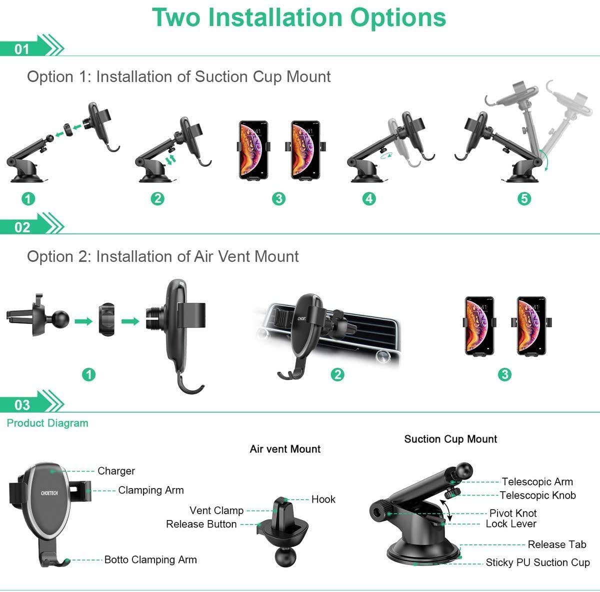 • Gravity & Linkage Design: This car wireless charger automatically grip your phone securely according to it’s weight and size, provide wireless charging simultaneously. Totally one-handed operation while driving