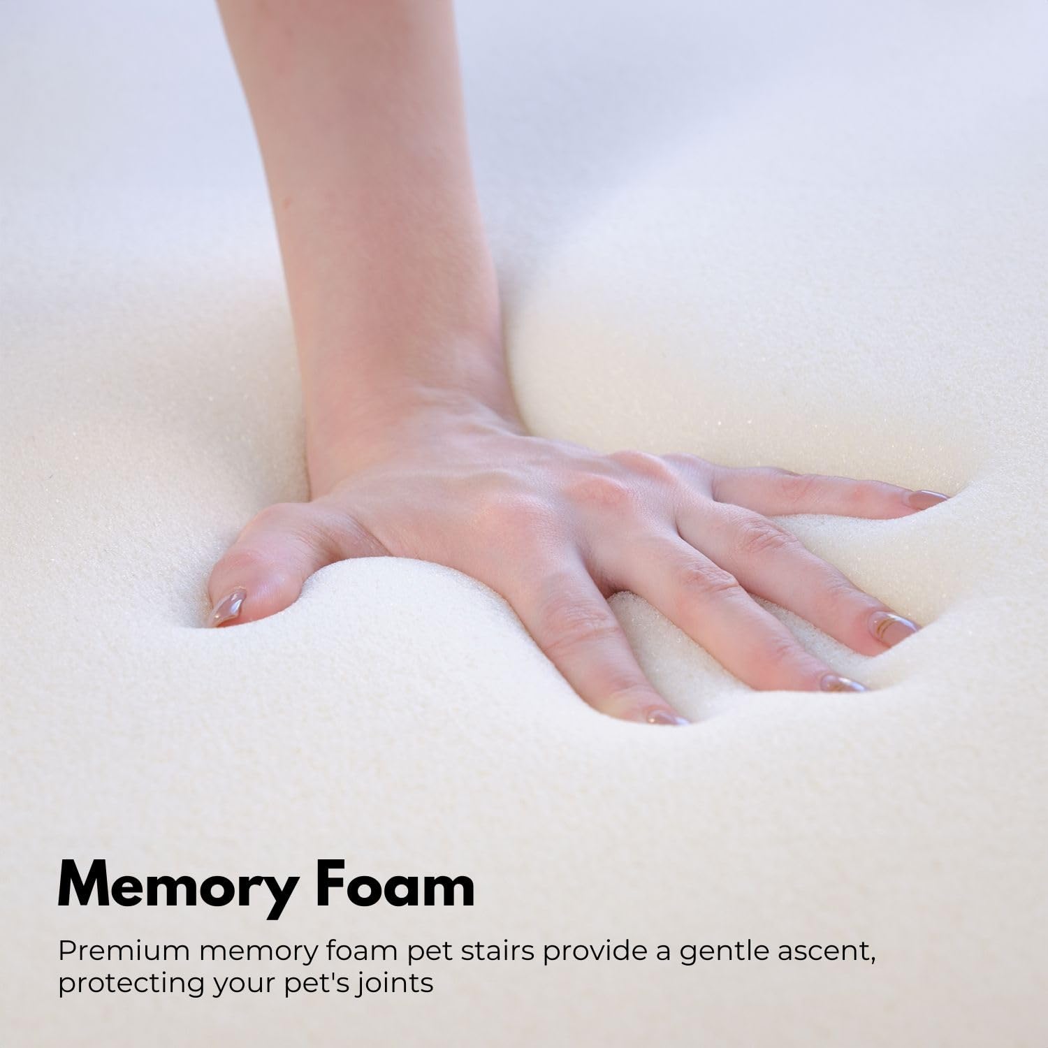 • High Rebound: The memory foam used in the pet stairs exhibits high rebound properties. This feature provides optimal support and comfort, adapting to the pet's weight and shape for a cozy experience.