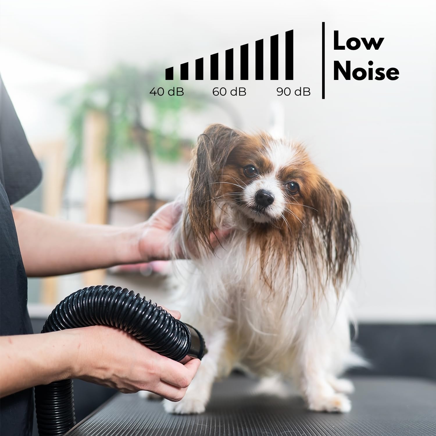 - Noise Reduction: The pet dryer features noise reduction technology, creating a quieter environment for your pet during the drying session. This minimizes potential stress and discomfort, ensuring a more pleasant grooming experience.