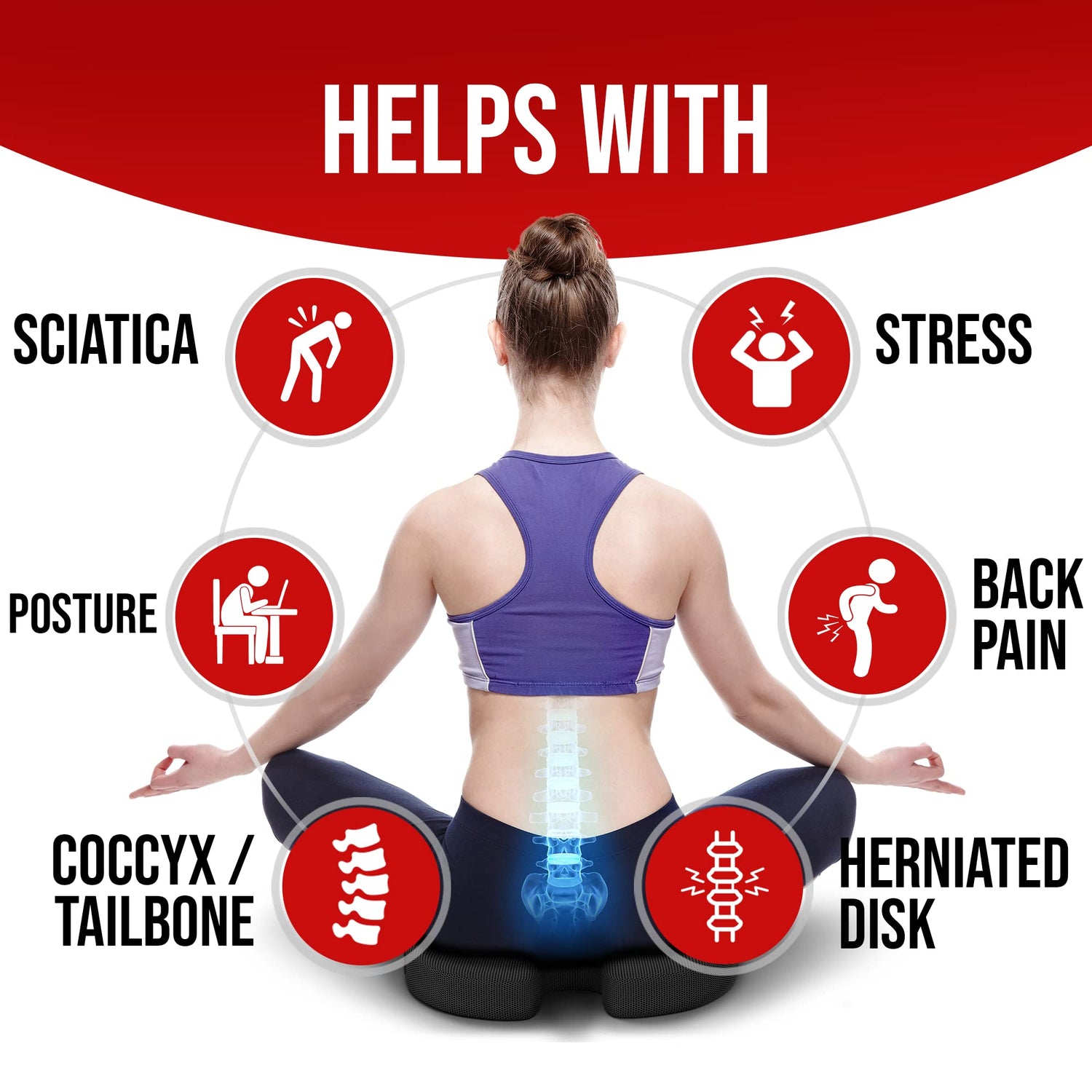- Enjoy Pain-Free Life with Ultimate Comfort – Our back support pillow is adjustable to the contours of your body, making it a great lumbar support pillow while driving or working long hours. The seat cushion for office chair is of utmost relief for coccyx/tailbone pain.