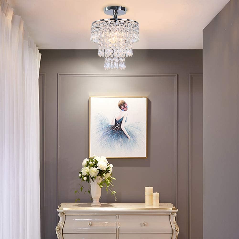 Mini Crystal Chandelier Ceiling Light Fitting Hallway Lights Ceiling Light 3 Tiers Crystal Raindrop Chandelier for Bedroom Living Room Dining Room (Chrome)