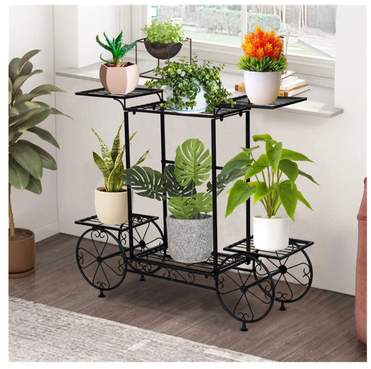 Garden Cart Stand & Flower Pot Plant Holder Display Rack 6 Tiers Parisian Style